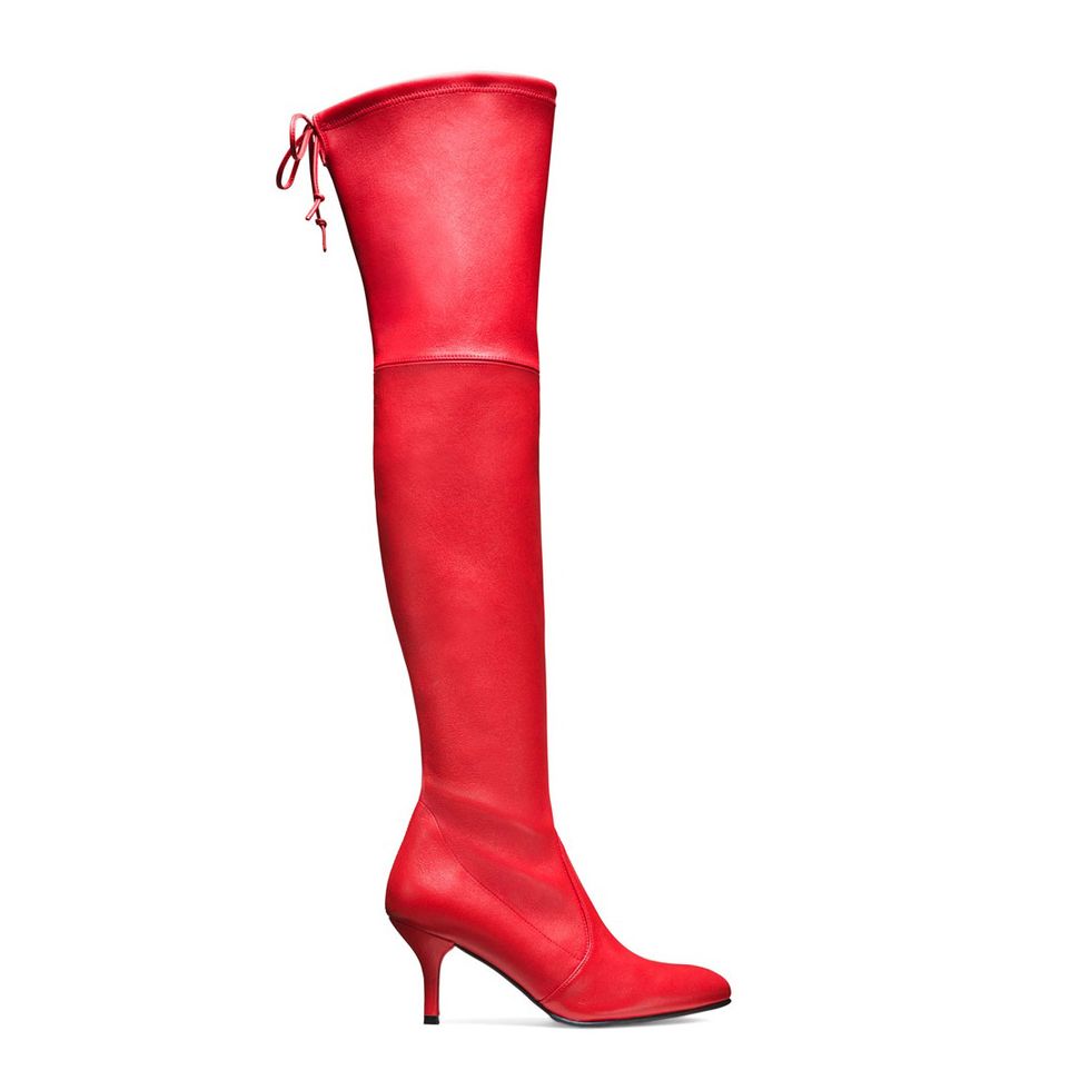Dren: “I LOVE the red thigh-high and patent white Stuart Weitzman boots.”