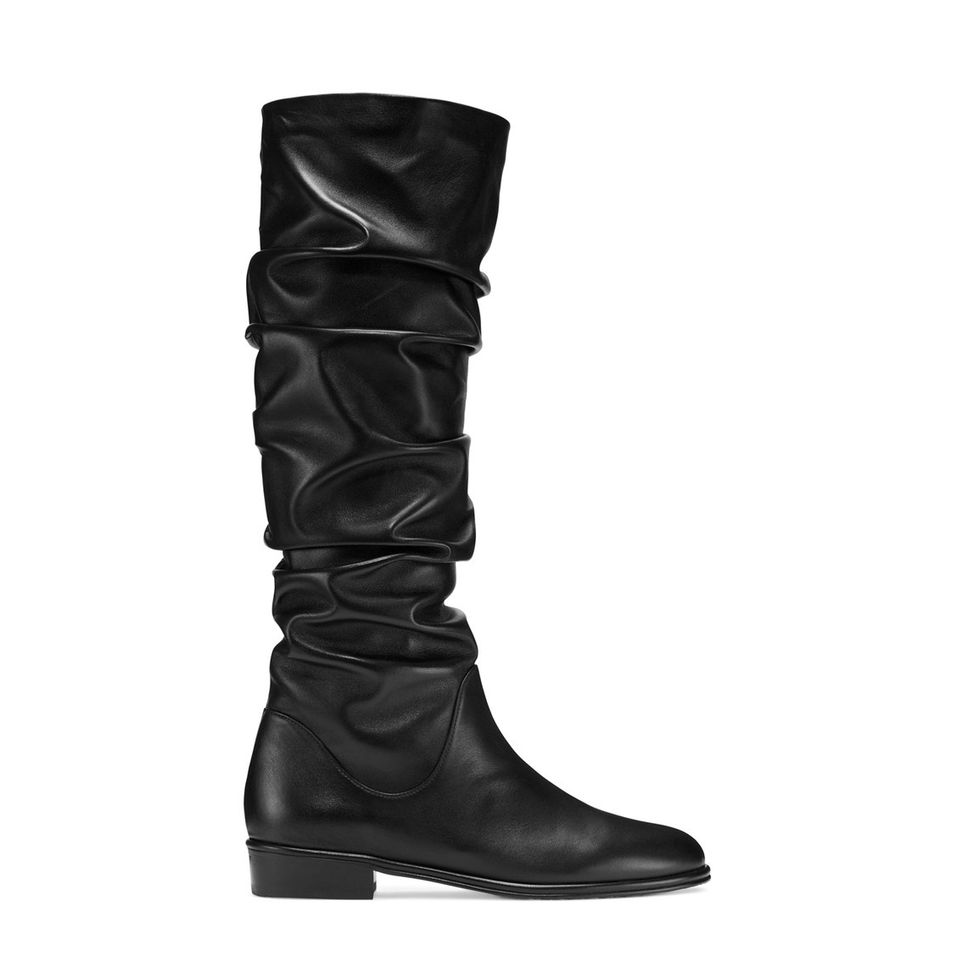 We get it, tall, slouchy, black leather boots can be all types of intimidating. To add a little structure and toughness to the silhouette, we love anything tailored with a suiting feel—whether that’s a boxy men’s-fit blazer worn as a dress (on Dren), or a silky, structured trench (on Angel).