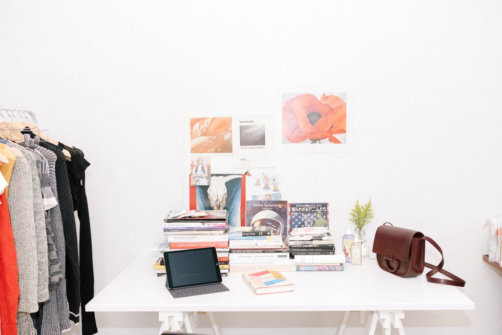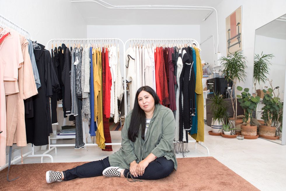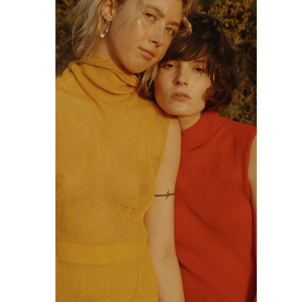 The fall/winter ’17 collection, currently at Bird and Garmentory, consists of subdued bell bottoms and off-the-shoulder ruffle tops. There are slip dresses in deep maroon and chunky sweaters in a pale oatmeal beige, cardigans that can be worn open and loose or buttoned up and slung around the shoulders. Each piece feels both flowing and structured—the perfect combination of her parents’ differences. “My dad’s very easygoing and laid-back. My mom’s very prim and proper,” Dora says.