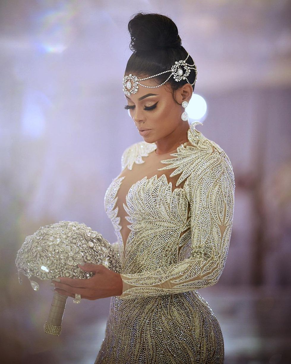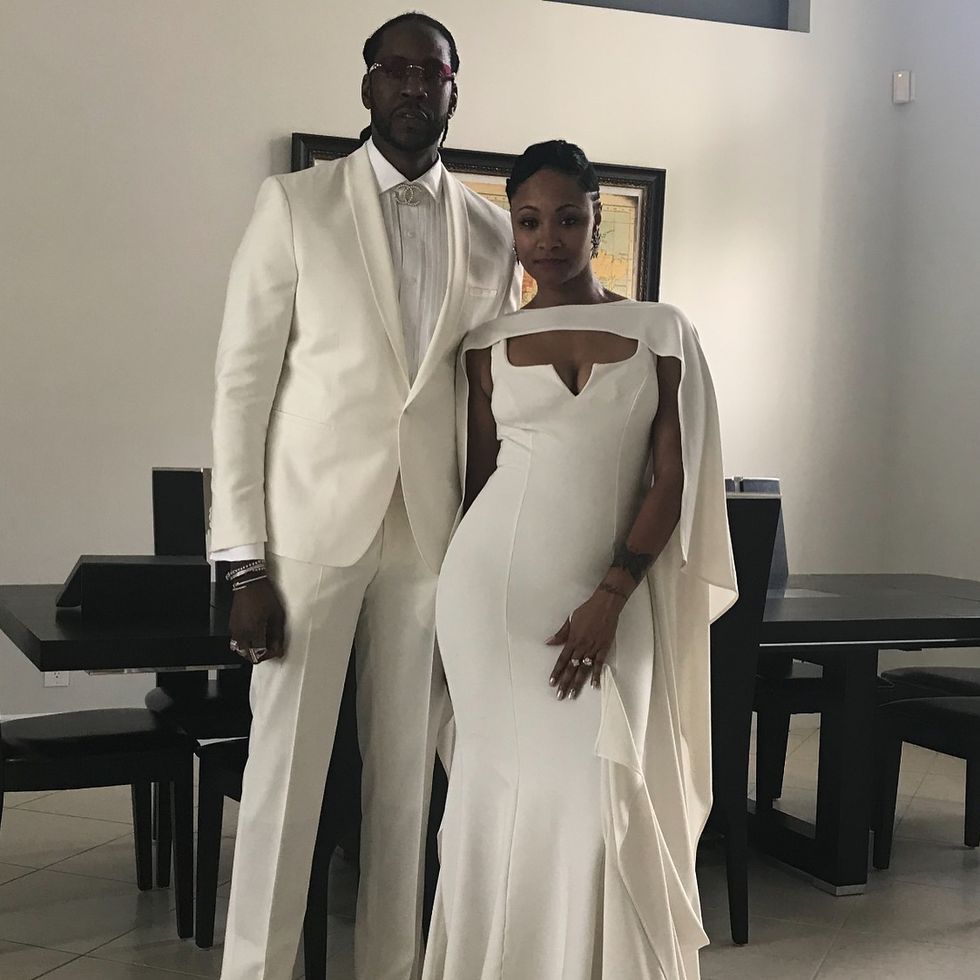 Gucci Mane and Keyshia Ka’oir wed last night in front of what seemed like the entirety of hip-hop royalty (all of which were dressed in mandated head-to-toe white) and millions of streaming fans. It was as outrageous, amazing, and dripped in diamonds, as you could imagine. The festivities kicked off the night before, where Gucci and Keyshia exchanged modest gifts like his-and-hers Bentleys and diamond necklaces at their rehearsal dinner. The wedding itself, from the stacked guest list featuring everyone from Karrueche to Jhene Aiko and Big Sean to P. Diddy, to the dripping-in-carats everything (*that* bouquet!) and the white floral tiered wedding cake that reached the ceiling (quite literally) is, well, everything.