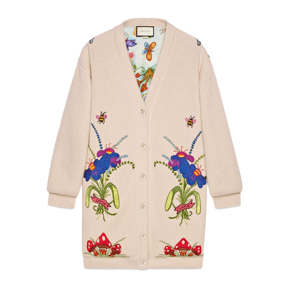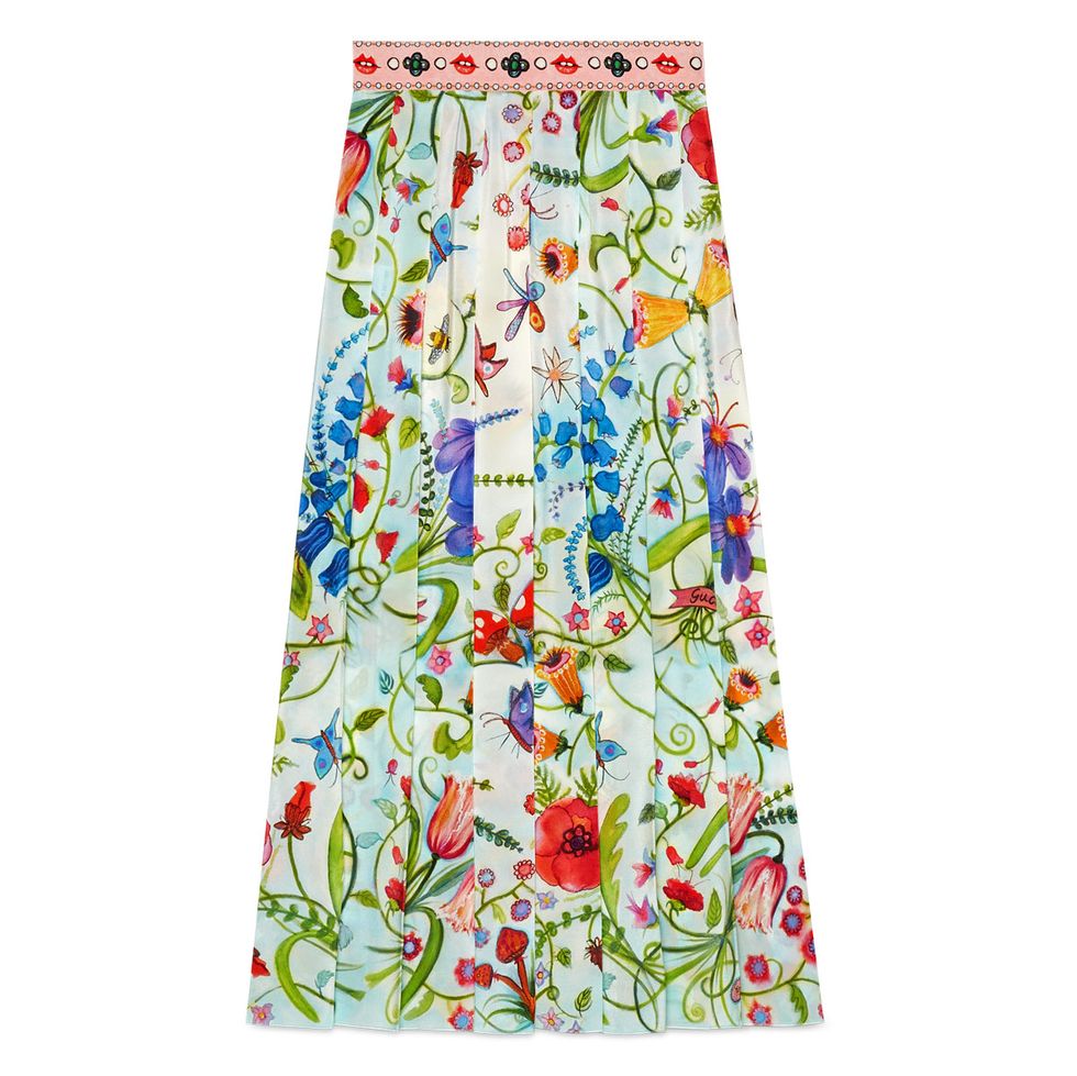 Her favorite Gucci x Unskilled Worker pieces from the shoot: “I loved the cardigan, because it’s a classic silhouette but a take on what’s happening now. It’s really cool that Alessandro started working with these independent artists and giving them a voice in such a huge industry. Putting their art out there, and putting it in people’s faces. I also love the t-shirt and that beautiful pleated skirt. So luxurious.”