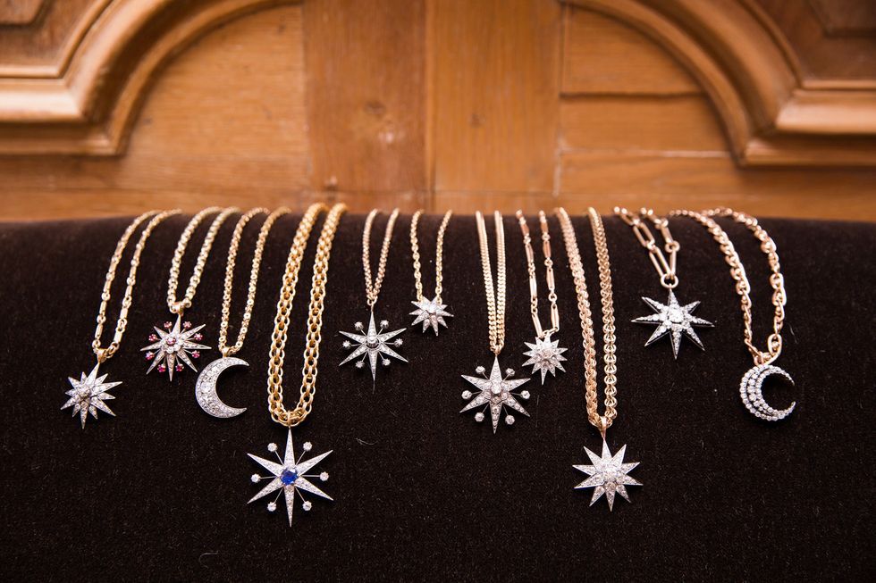 “I begged and begged her for it,” she says of the exchange that ensued with her mother. “I said, ‘It can be my birthday present, it can be my everything present—please!’ She ended up getting it for me, and I put it on this crappy thin chain that I had from another necklace. I was wearing it around that summer in the Hamptons and literally getting stopped on the street. [People would ask], ‘Where is that from? What designer is that?’” When Chloë told her mother about the flurry of questions, the two decided to go into business together and were soon back in the U.K., sourcing gem-encrusted celestial pieces and nineteenth-century chains. They officially launched their brand in 2015.