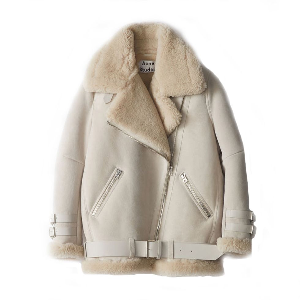 2. Acne Studios Velocite Suede Ecru/Ecru: I’ve had an Acne Studios shearling jacket on my wish list for a long time. This version looks super cozy, and I love the added belts around the neck, sleeves, and below the waist–they add a little extra something.