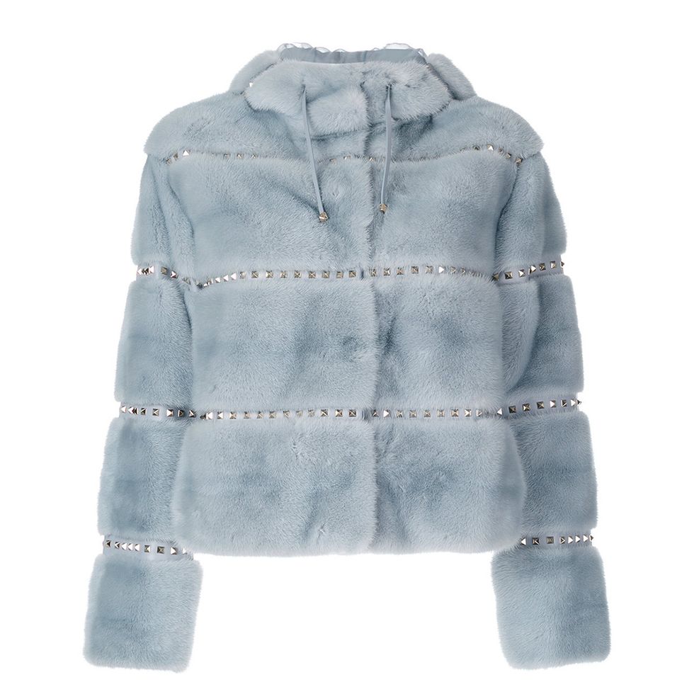 3. Valentino Rockstud Jacket: It doesn’t matter what you pair with this Valentino jacket because, regardless, you’ll be turning heads and making a real statement. With the signature rockstud detail, baby blue color, and hood—I mean a girl can dream.