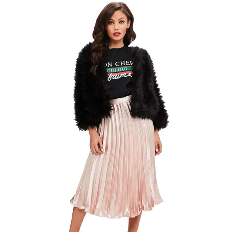 Skirts are inherently feminine, so some people just write them off as too girly. Liffner illustrated that aspect of her wardrobe with a glistening purple pleated skirt and rainbow sweater. But for her second look, she paired a white skirt with a Nirvana band tee, a black blazer, and badass platform boots, proving that the midi skirt can be just as versatile as jeans.