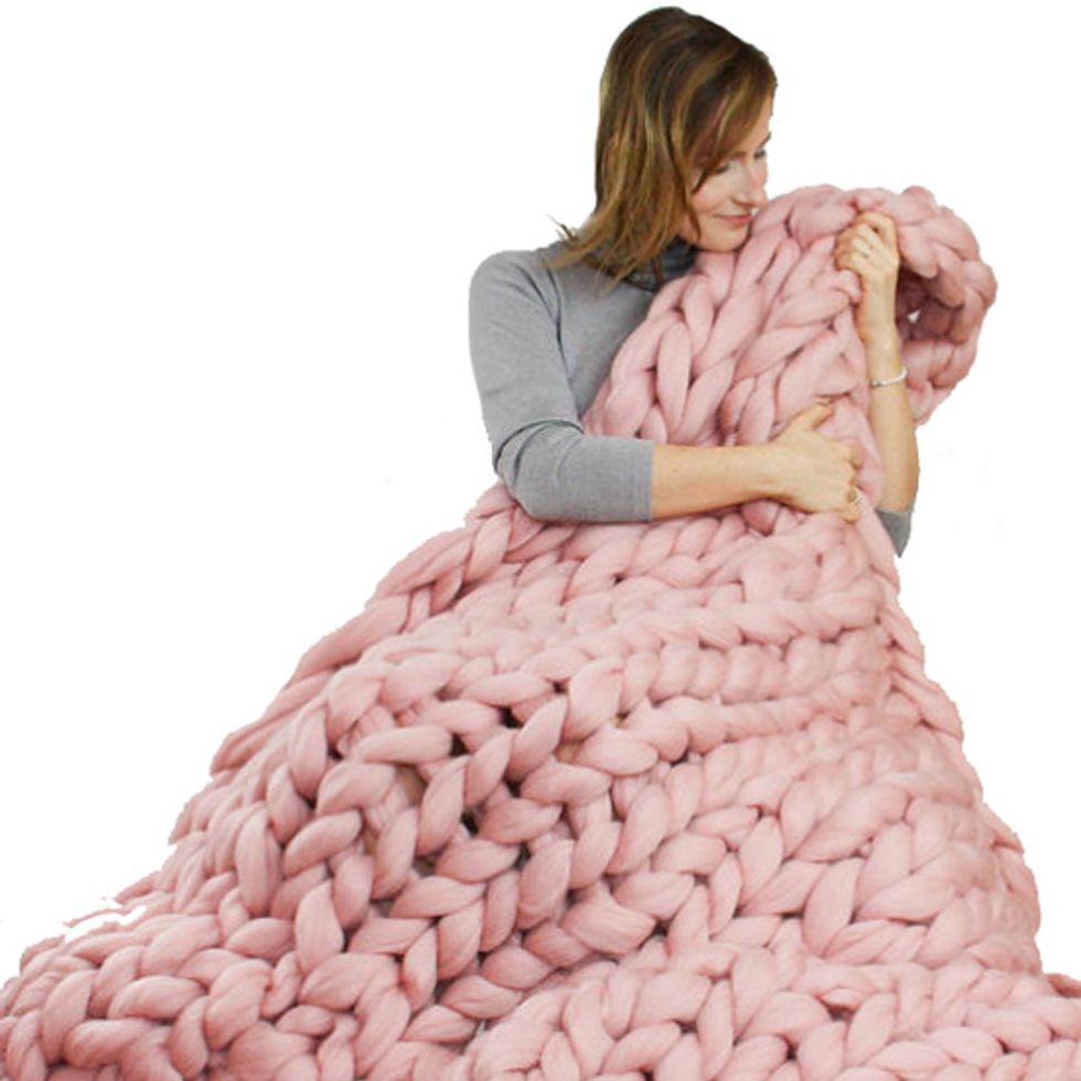 But this winter season, why not overhaul your blanket collection? Trade in your ratty old throw for a chicer, cozier upgrade. There are more options than ever before, thanks to the popularity of crocheting and the hygge movement. Whether you’re looking for a chunky knit blanket or a rich cashmere throw, there’s one for you and your toasty winter needs. Here are 19 giant blankets to wrap yourself up in until spring.
