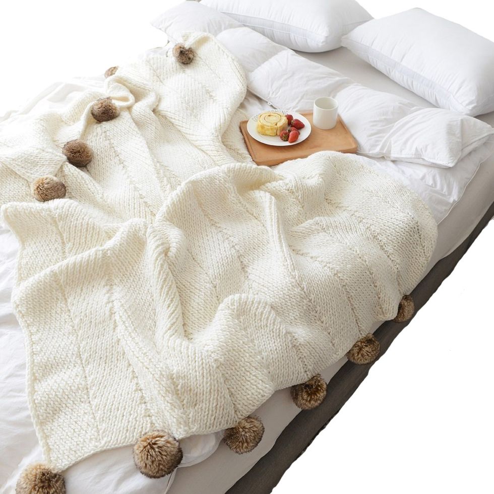 Nothing says winter quite like a giant knit blanket. Yes, wrapping yourself up in a cozy throw is technically a season-less activity, one that you likely do on the daily on your couch or your bed, but it doesn’t feel quite as good until the temperatures have dropped and the holidays start to roll in. Watching a spooky movie with a blanket as your shield? The best. Digesting your Thanksgiving meal while tucked underneath heavy knitted fabric? Arguably therapeutic. Listening to holiday music, draped in your favorite Christmas quilt? I rest my case.