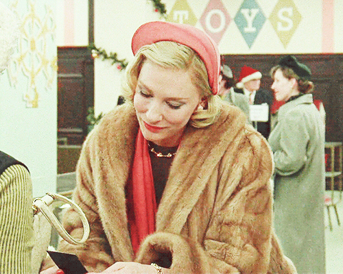 Todd Hayne’s romantic period film Carol is beautiful in almost every sense of the word. There’s the forbidden love story between Cate Blanchett and Rooney Mara. There’s the impeccable set design that takes you back to the 1950s. And then, of course, there’s the dreamlike costume design by legendary Sandy Powell, which literally makes you want to go back to the 1950s, simply to wear pillbox hats and coral gloves. Blanchett plays Carol, and every one of her outfits induces just as much dreamlike desire as her character does. A particularly amazing ensemble is the grey suit, coral scarf, and fur coat pairing that catches the eye of Mara’s character, Therese. The outfit itself is practically a masterclass in effortless, throwback layering.
