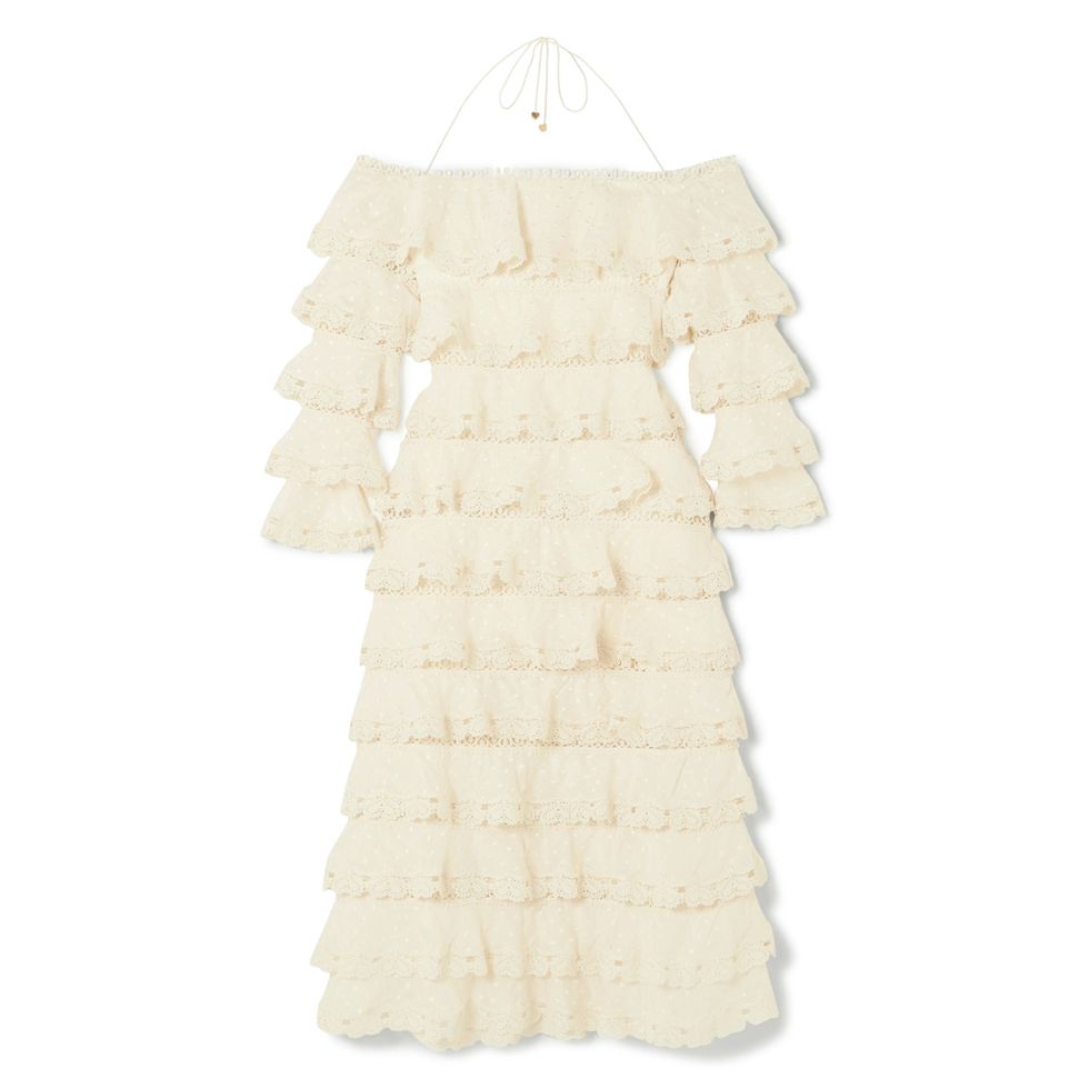 Winona forever! Edward Scissorhands isn’t just an amazing *holiday* film, it’s also an amazing film—period—about belonging, conformity, and beauty. Winona falling in love with Johnny Depp on-screen while concurrently falling for him off-screen (sans scissors) is one of the most iconic pairings ever. It’s hard not to remember the scene where she emerges from her house in an off-the-shoulder white dress, complete with a bow cinched at her shoulder, and finds herself covered in ice flakes as Edward carves an angel ice sculpture. The dress immediately reminded me of one of Miaou’s SS18 dresses, for which Winona’s look could have been the inspiration. But since it’s not available yet, here are some alternatives to wear to that next ice-carving event...and then forever after.