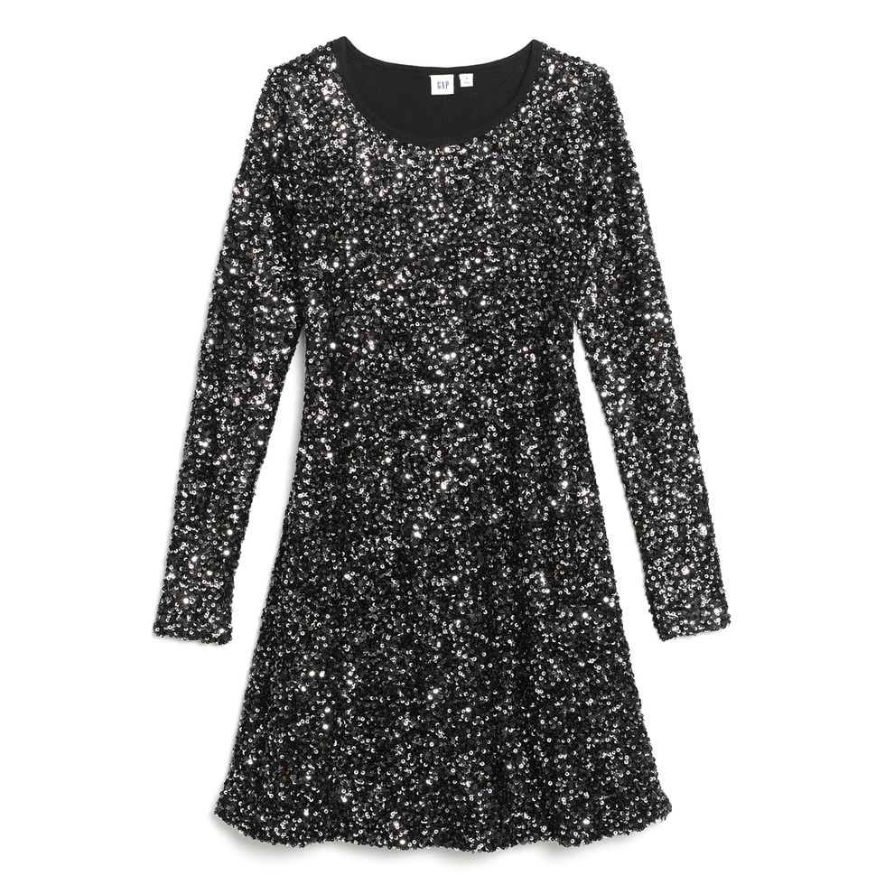 Holiday dressing is synonymous with glitz and sparkle, so we’ve zeroed in on this Gap long sleeve sequin swing dress. It’s appropriate for a work party (a crew neck and long sleeves are a safe bet) but also so much fun (hello, short hemline and sequins!). Shoe options are endless with a sparkling LBD, though we’re partial to a great pair of mules with bow detailing—chic and easy to dance in, too! For beauty, we’re thinking two coats of dark mascara and a classic, bold red lip.