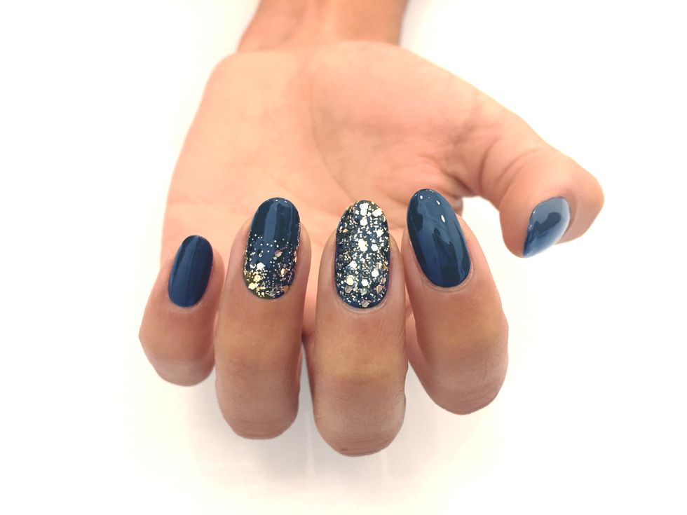 Step up your stripes game by adding a touch of glitter. “Glitter stripes are a great way to mix it up if you want something subtle but still fun,” Gibson Tuttle tells Bustle.