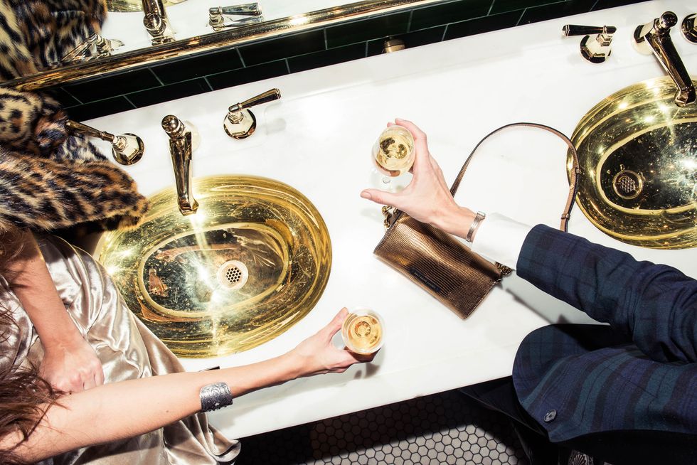 Still stumped on nailing holiday dressing? Do like Marina, and opt for a classic from the Kate Moss playbook: a fluffy faux fur (we love the ocelot print on this Polo Ralph Lauren one) and a slinky slip dress (hers is actually a velvet tank and velvet skirt).