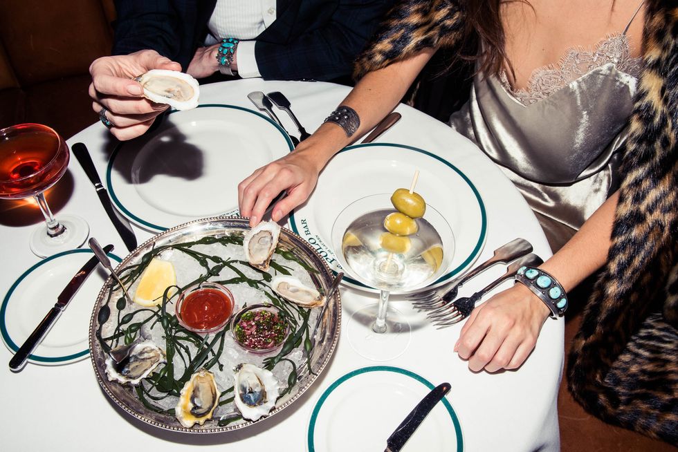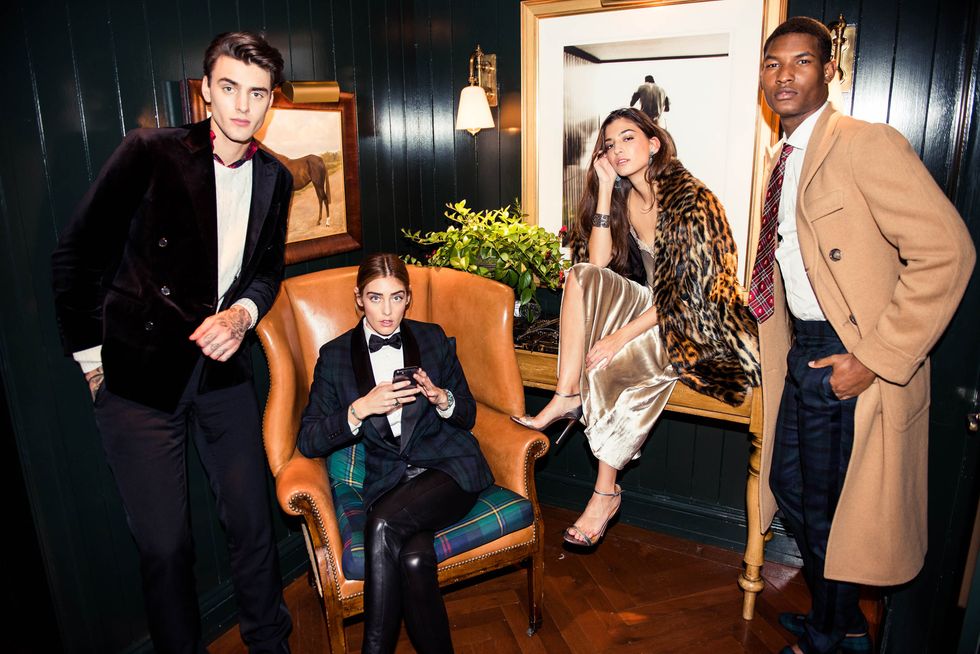 And there’s nowhere in the city that captures that exact feeling like Ralph Lauren’s Polo Bar—the brand’s iconic spot on East 55th Street. The vibe is distinctly chic hunting lodge—with cognac-hued leather banquettes, vintage polo accessories, fireplaces in every nook, walls covered from floor to ceiling in mismatched vintage frames and equestrian paintings, the most gorgeous emerald-green accents… In other words, a picture-perfect spot for catching up over a round of Manhattans and bar snacks while the snow falls outside. To demonstrate, we recruited actor Juliette Labelle and Point Off View designer Marina Testino to quiz them on how they handle the holidays, dressed head-to-toe in some of Polo Ralph Lauren’s most holiday-ready looks. Hint: Prepare to fire up your KiraKira.