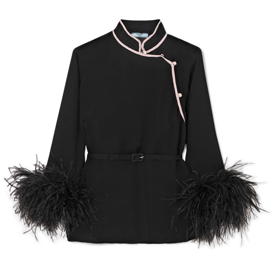 2. Prada Feather-Trimmed Silk Top: The second I came across this feathery blouse, I was like, “THESE will go with my Ganni pants!” They were made for each other, just as this top was made for New Year’s Eve.