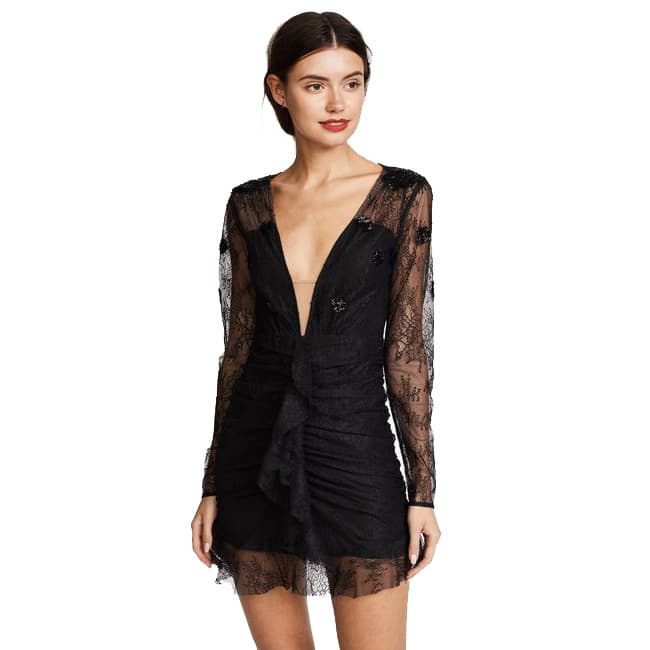 1. For Love & Lemons Lace Mini Dress: One thing I always forget about when picking my NYE outfit is how cold it is outside. The long sleeves on this dress definitely help me justify wearing it in the cold, but I think the gorgeous V neckline and playful sequins already have me sold.