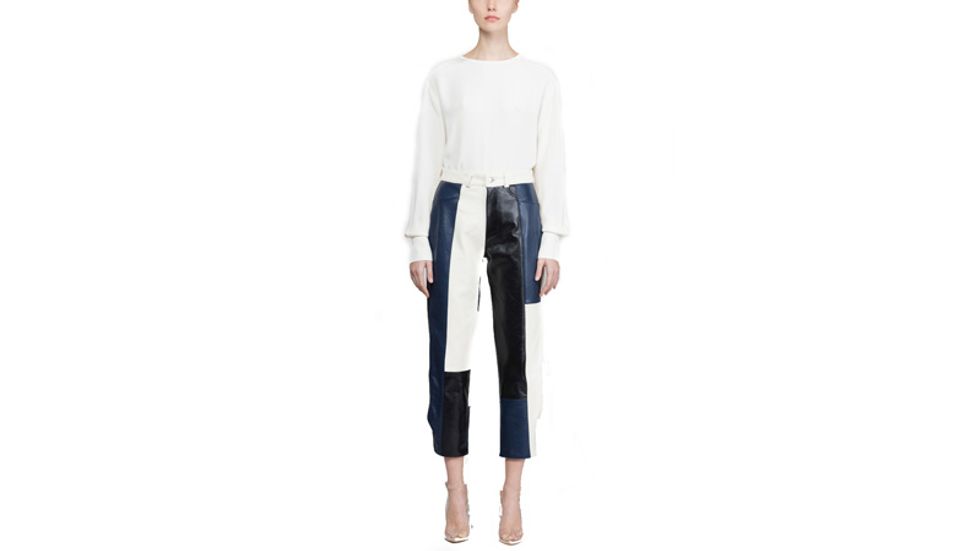 “These pants are so special and are actually really easy to wear and integrate into your everyday wardrobe. If you want to lean in to the sporty feel, pair them with a cropped sweatshirt and open-toe simple heels. For something more dressed-up, tuck in a cream blouse and pair them with booties.”