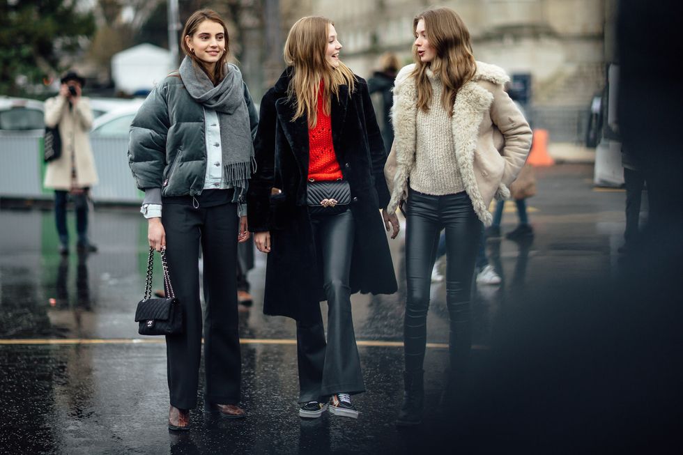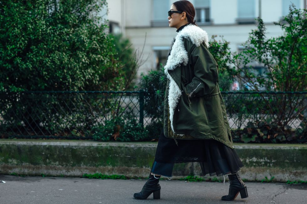 Couture Week is officially under way in Paris, and as usual, our attention is just as attuned to the runway as it is to the street style. The international fashion set has a knack for nailing the latter, and this is especially true in Paris—a city where *any* occasion is deemed worthy of one’s fancy platforms, over-the-top fur coat, and embellished high-waisted skirt. Thus far we’ve spotted head-to-toe green leather, a heap of designer bags, and outerwear—some cropped, some candy-colored, and some shearling—that we’d do crazy things for—and also some more understated, dare we say normcore elements? What a wonderful time of year.