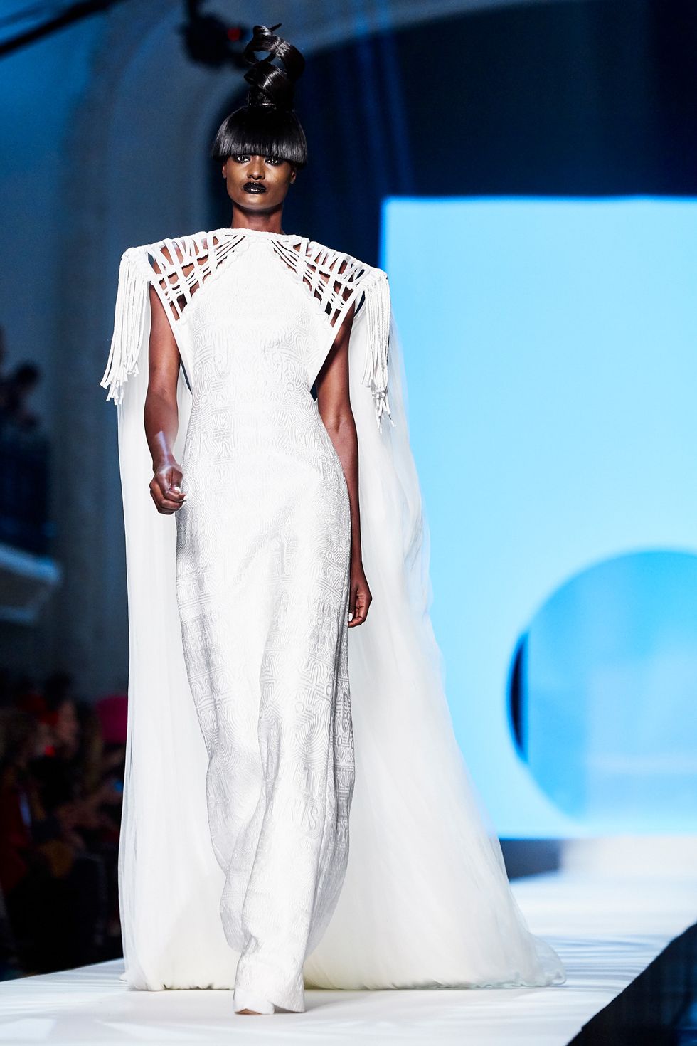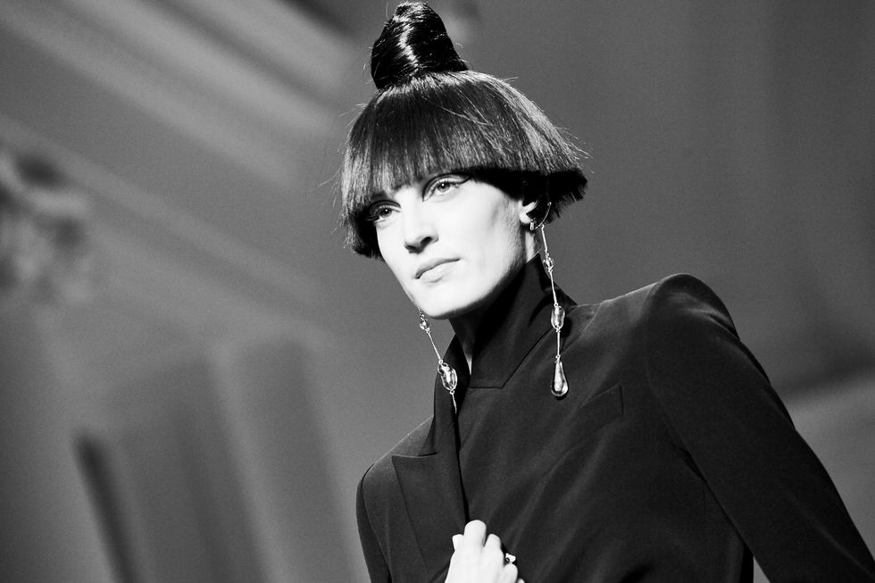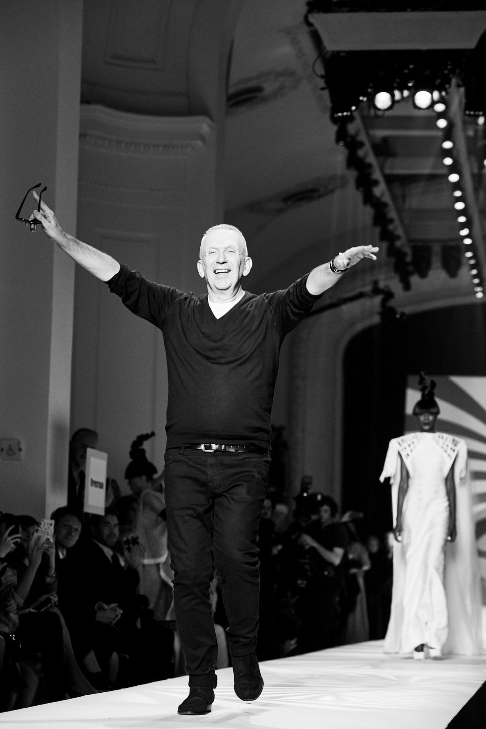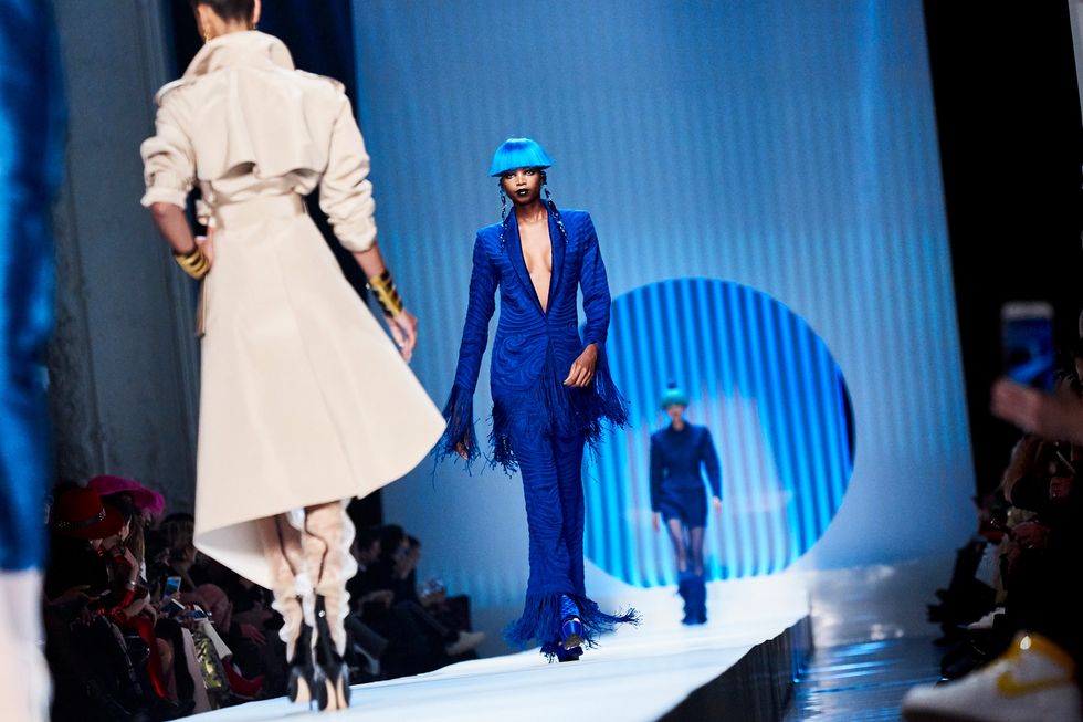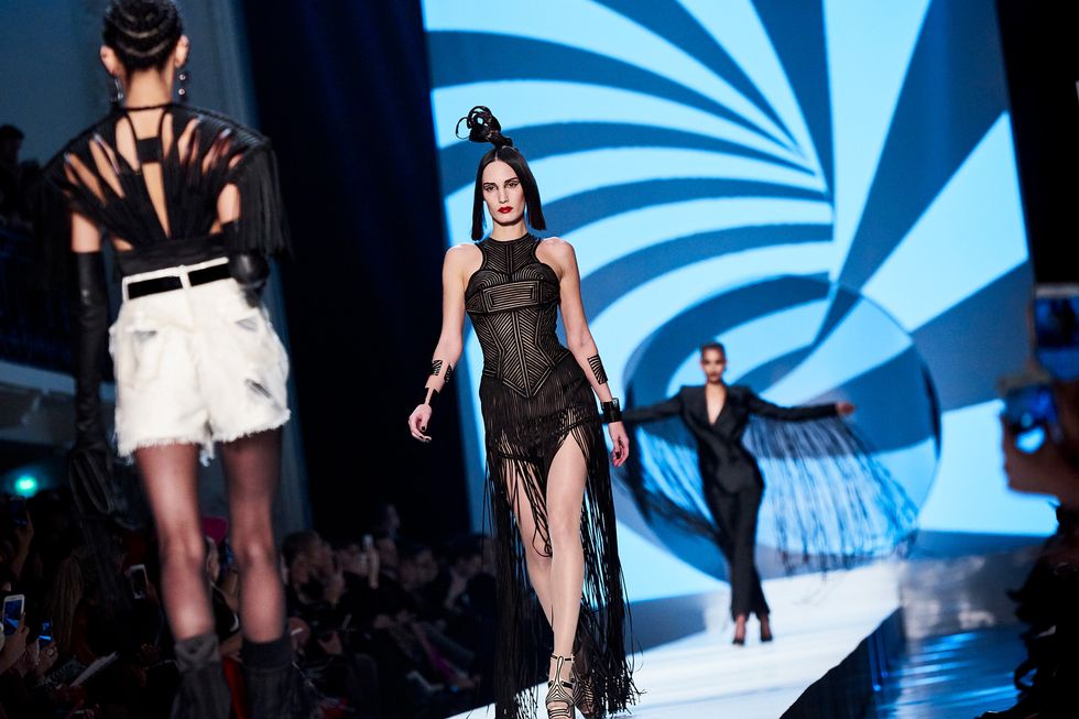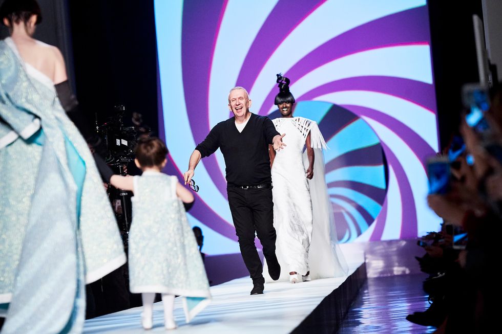Whoever said models don’t have personalities has never met the crew that walked down the Jean Paul Gaultier runway. This diverse group of women had a virtual walk-off while modeling the ’60s-inspired couture collection. Guests, including Pierre Cardin and Nicolas Ghesquière, whooped and clapped as models tried to out-pose each other.