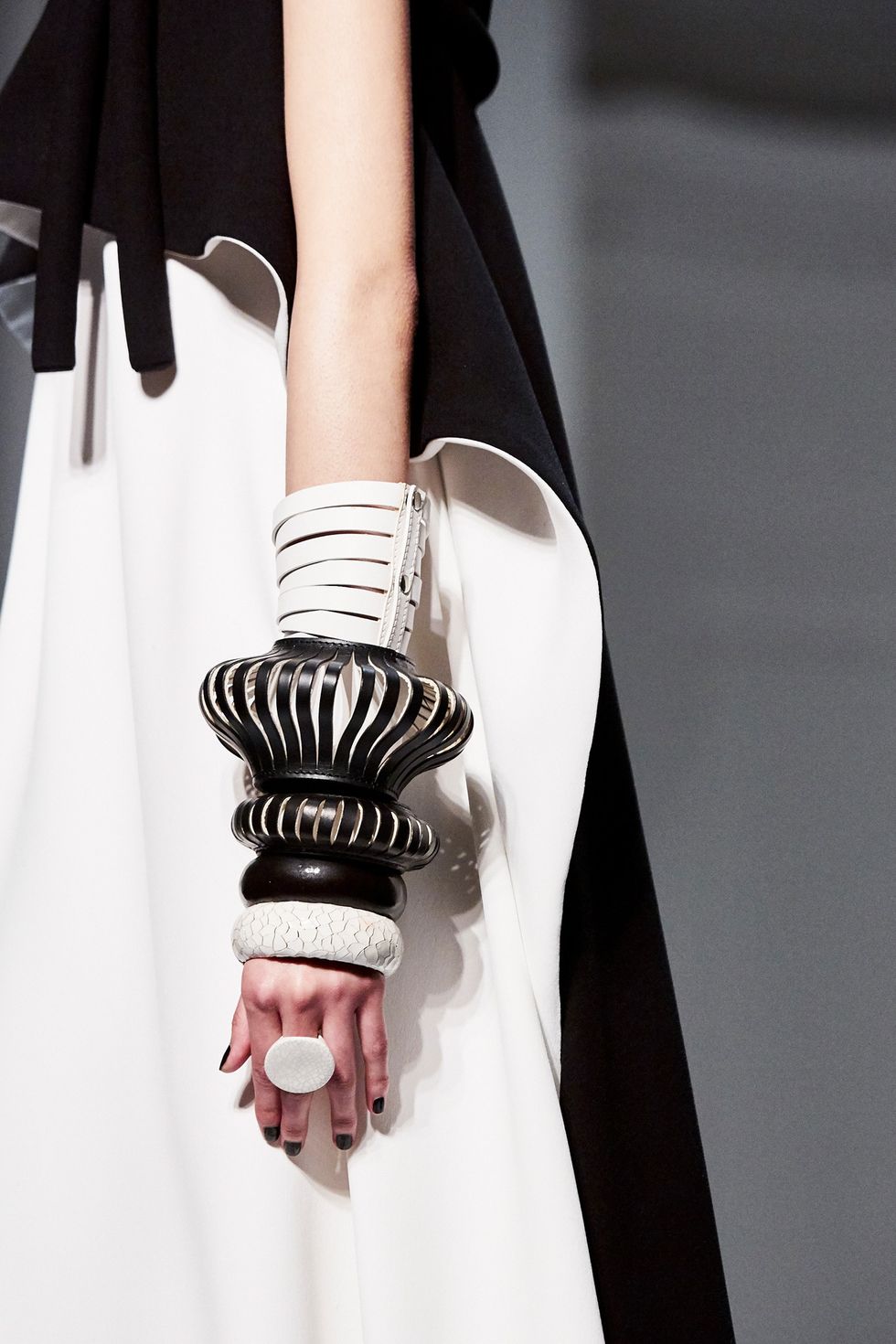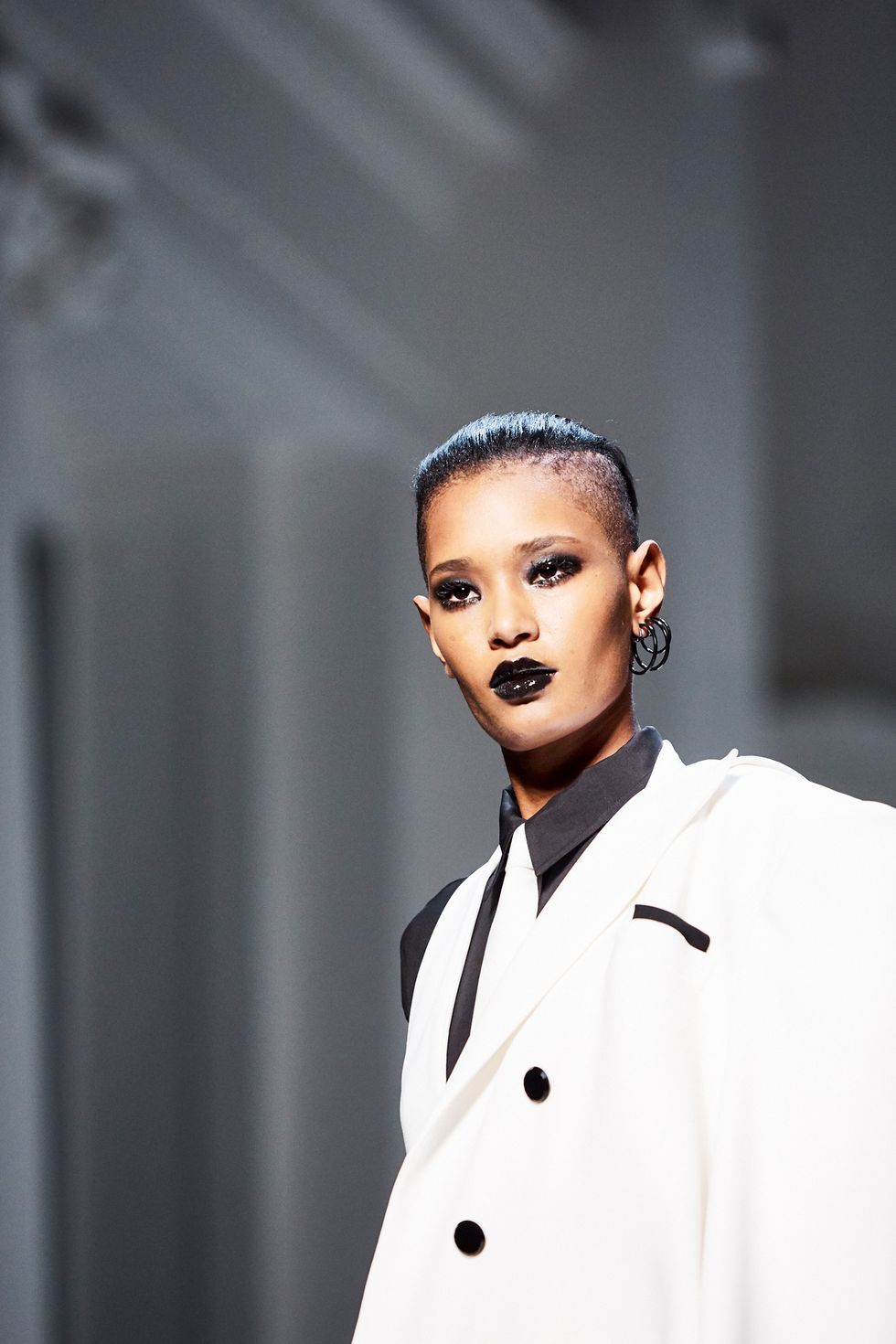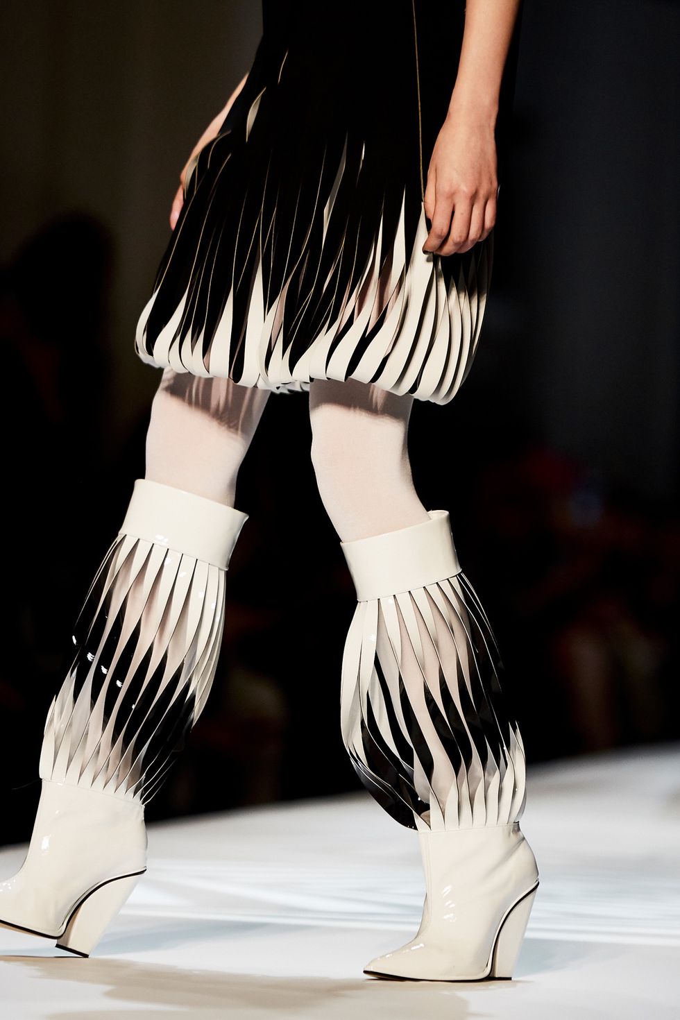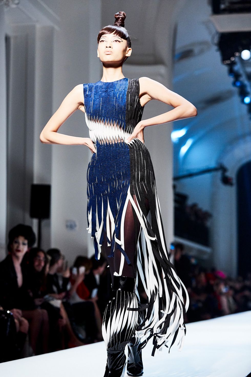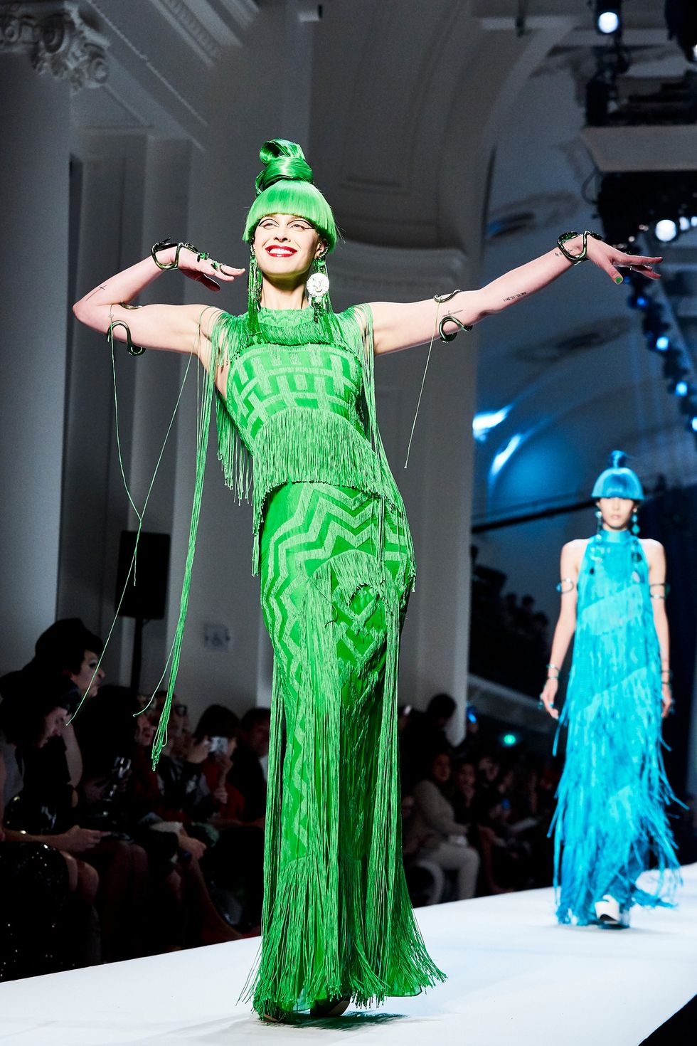Whoever said models don’t have personalities has never met the crew that walked down the Jean Paul Gaultier runway. This diverse group of women had a virtual walk-off while modeling the ’60s-inspired couture collection. Guests, including Pierre Cardin and Nicolas Ghesquière, whooped and clapped as models tried to out-pose each other.