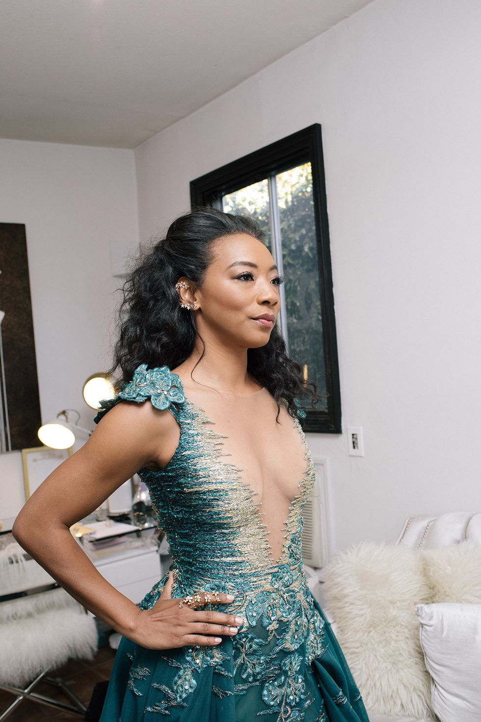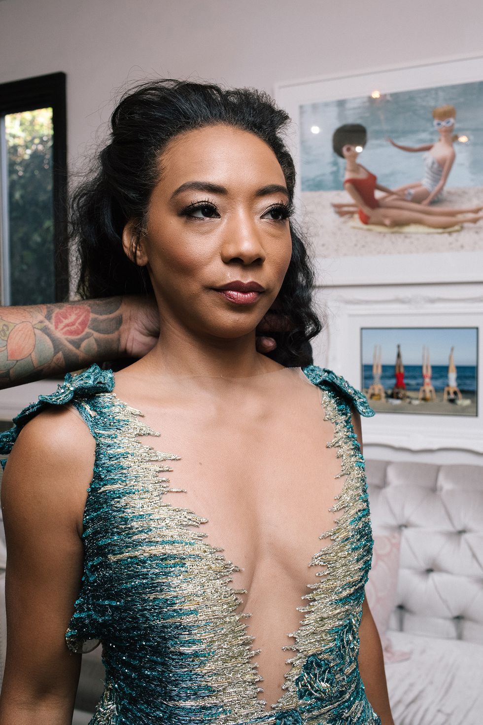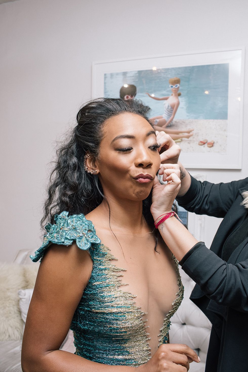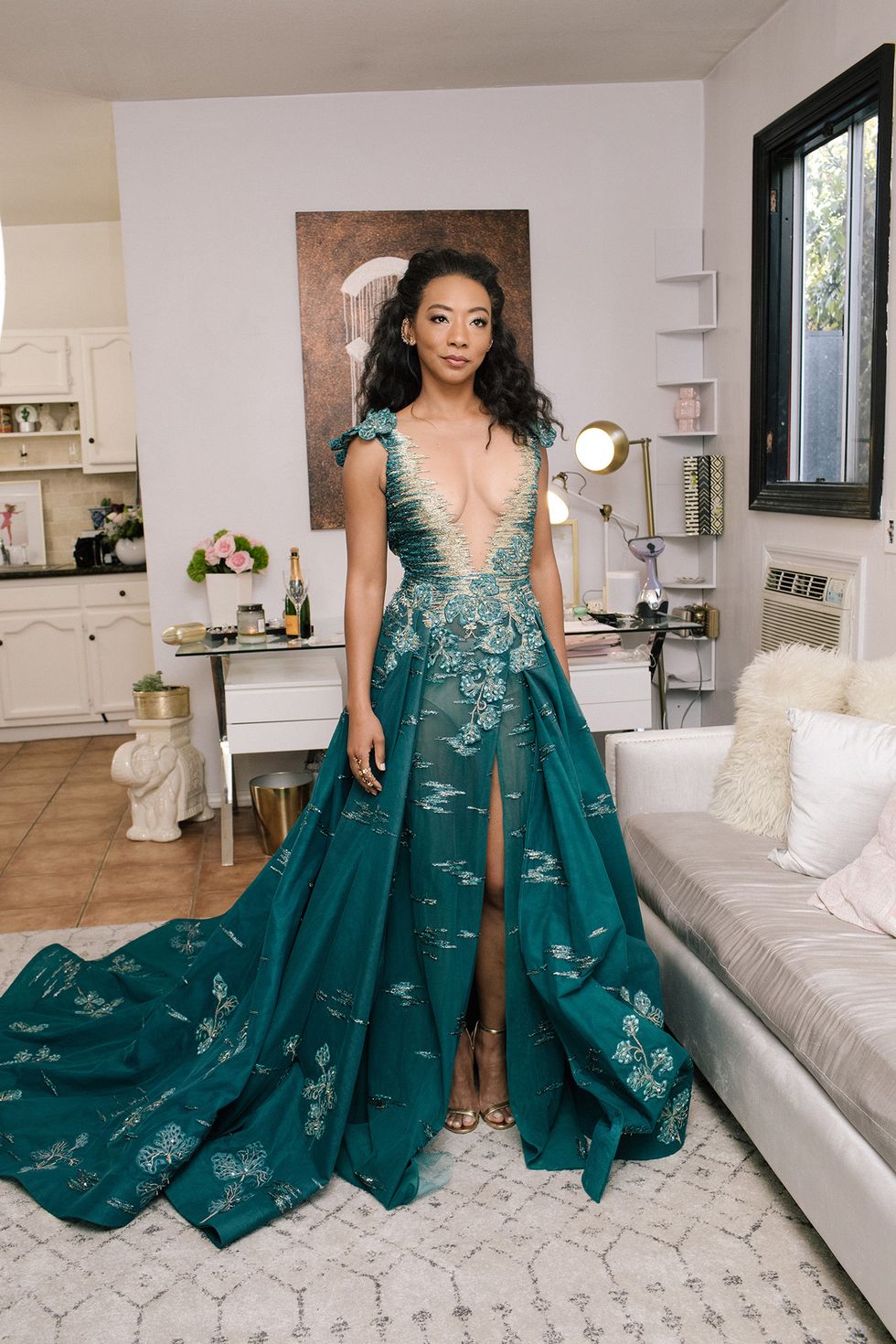 When Get Out’s Betty Gabriel stepped onto the Oscars red carpet, we have no doubt that jaws around the world dropped (ours certainly did). That plunging neckline! Those floral decals! Her hair! Her makeup! Her confidence! The sexy-meets-regal look was quite the contrast from the the maid we saw on screen in the history-making movie, and luckily we had the chance to see how it all came together. Ahead of the show, Gabriel had us over as she got ready and, along with her stylist Sonia Young, answered a few fashion- and film-related questions we had on our minds.