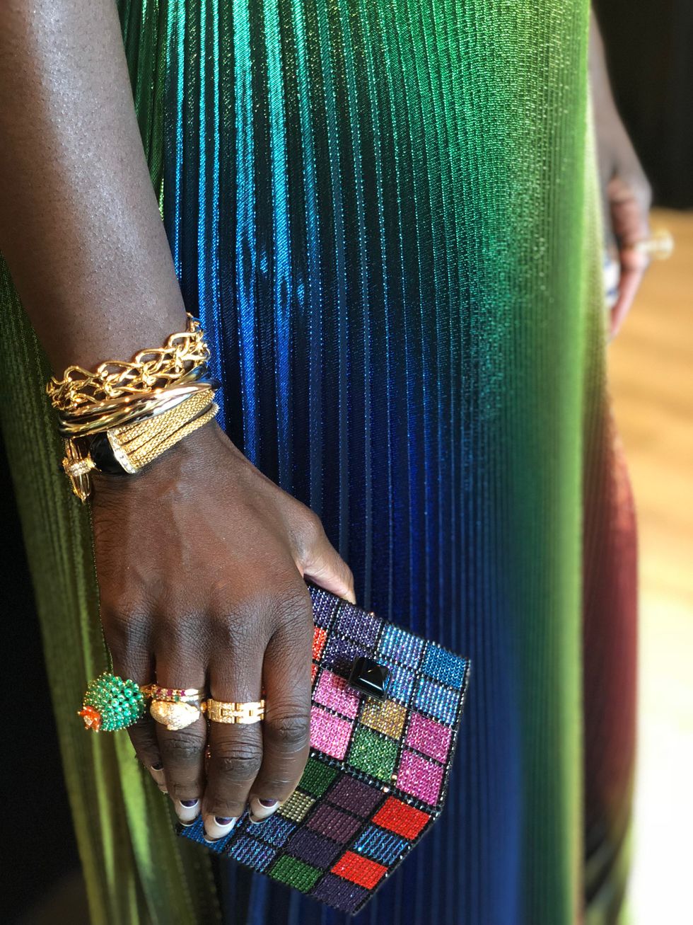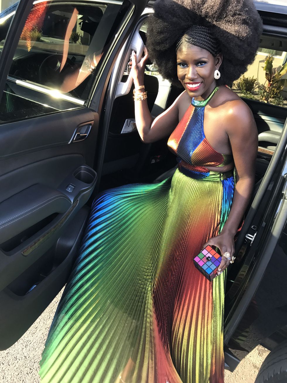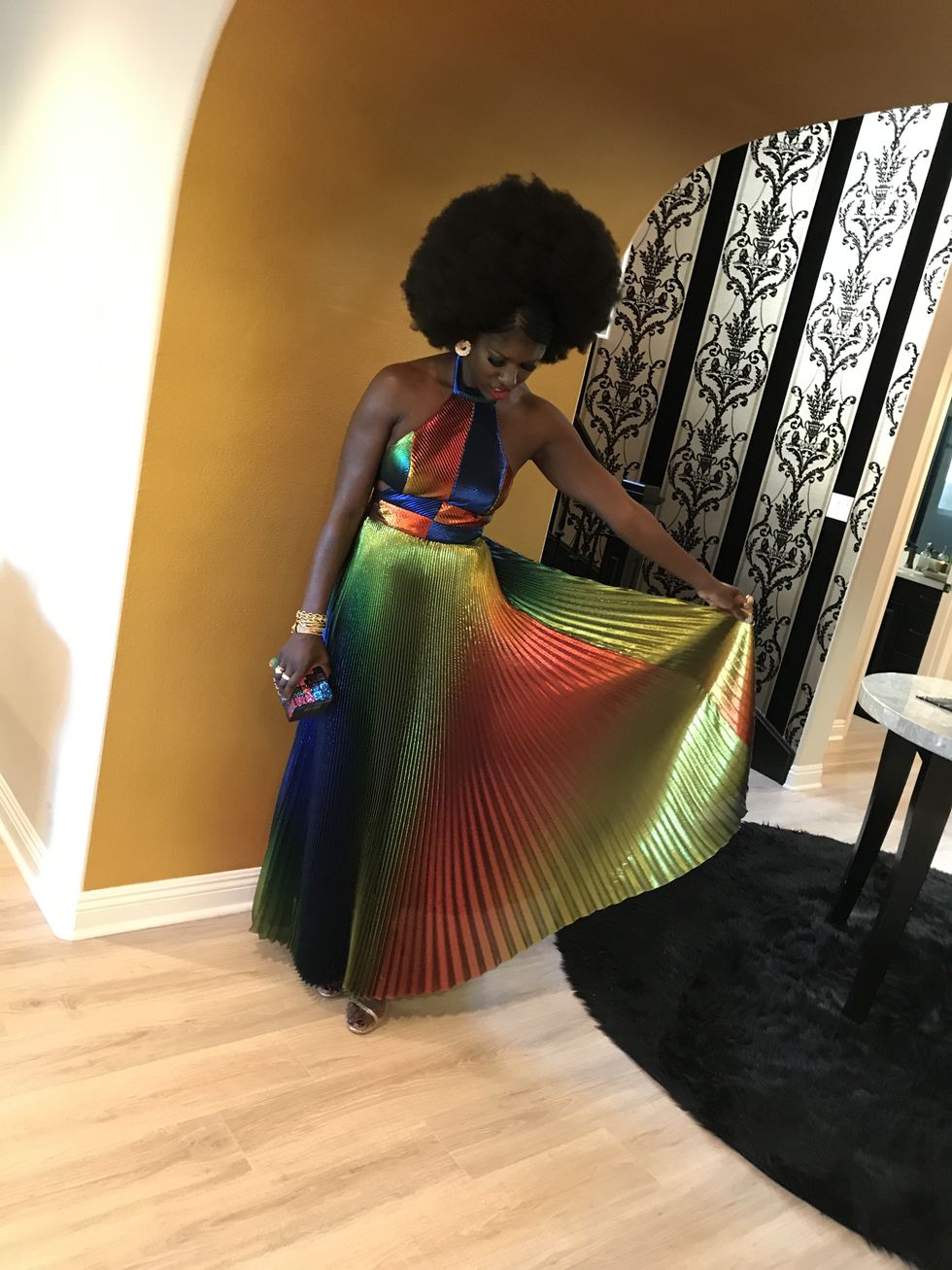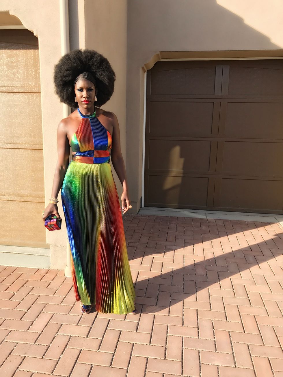 We have so many things to say about Bozoma Saint John’s magical Oscars after-party that we don’t even know where to start. Uber’s chief officer, who is also known as Boz, stepped into Vanity Fair’s official after-party looking like the true queen she is in a floor-length rainbow-colored gown by Rosie Assoulin, sought out by her friend and stylist, Negar Ali Kline. And the dress wasn’t the only jaw-dropping part of the look; Saint John wore her hair in a gorgeous afro with cornrows, hit us with some bold, glow-y makeup (hi, blue eyeshadow!), and rocked chunky jewelry and her nail art. Hats off to Kline for finishing off the look with sparkly gold heels and a Rubik’s Cube clutch (Judith Leiber, of course). We bet money on the fact that Saint John is, at this very moment, the belle of the ball at the Vanity Fair Oscar Party. More details on her look ahead.