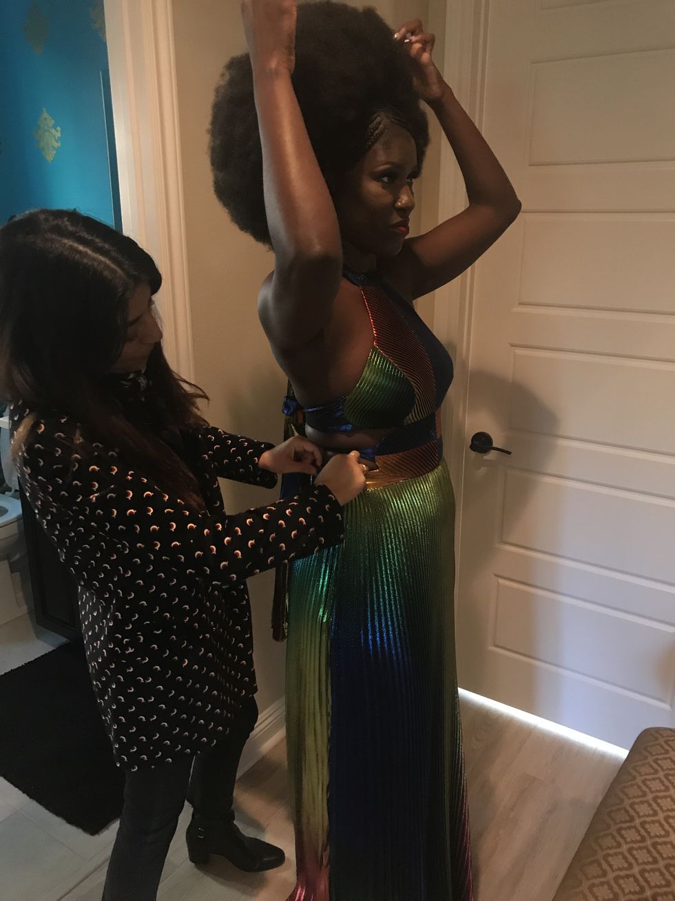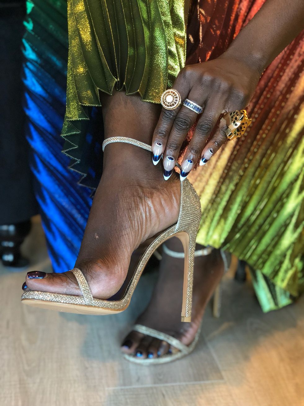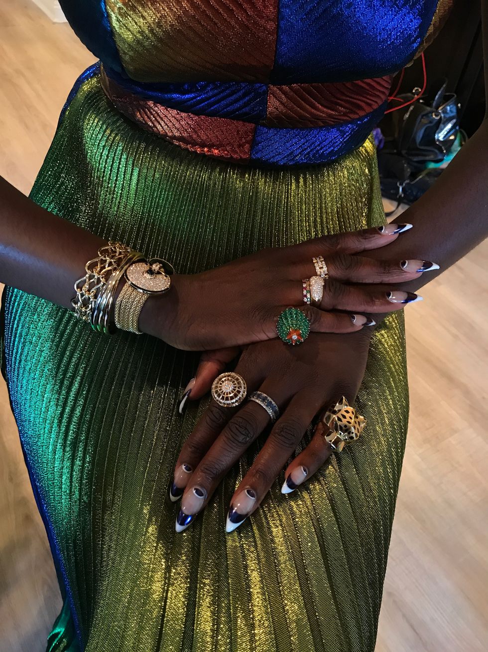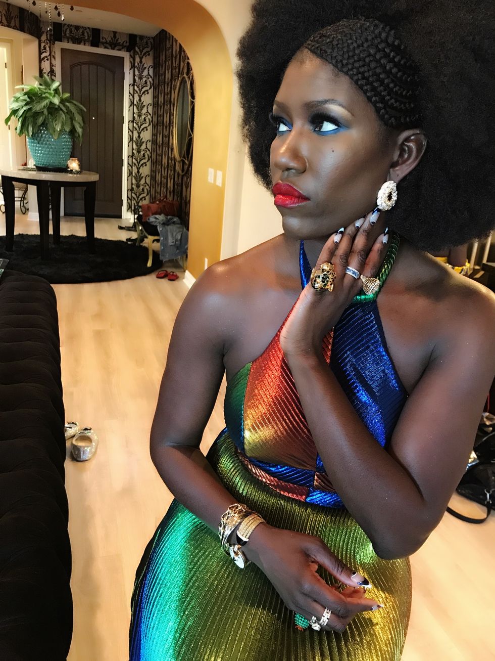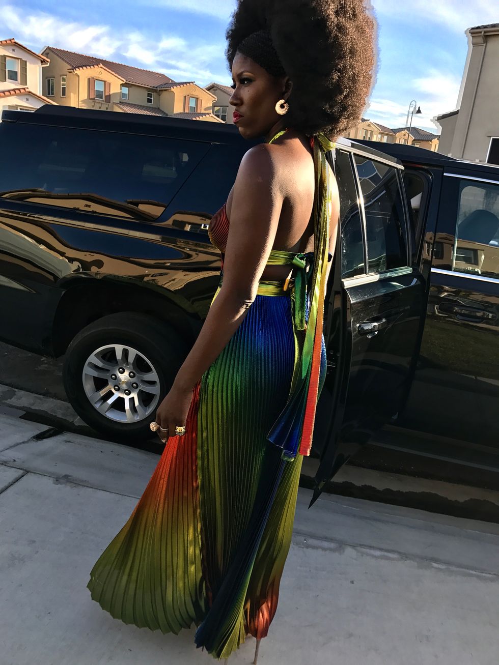 We have so many things to say about Bozoma Saint John’s magical Oscars after-party that we don’t even know where to start. Uber’s chief officer, who is also known as Boz, stepped into Vanity Fair’s official after-party looking like the true queen she is in a floor-length rainbow-colored gown by Rosie Assoulin, sought out by her friend and stylist, Negar Ali Kline. And the dress wasn’t the only jaw-dropping part of the look; Saint John wore her hair in a gorgeous afro with cornrows, hit us with some bold, glow-y makeup (hi, blue eyeshadow!), and rocked chunky jewelry and her nail art. Hats off to Kline for finishing off the look with sparkly gold heels and a Rubik’s Cube clutch (Judith Leiber, of course). We bet money on the fact that Saint John is, at this very moment, the belle of the ball at the Vanity Fair Oscar Party. More details on her look ahead.