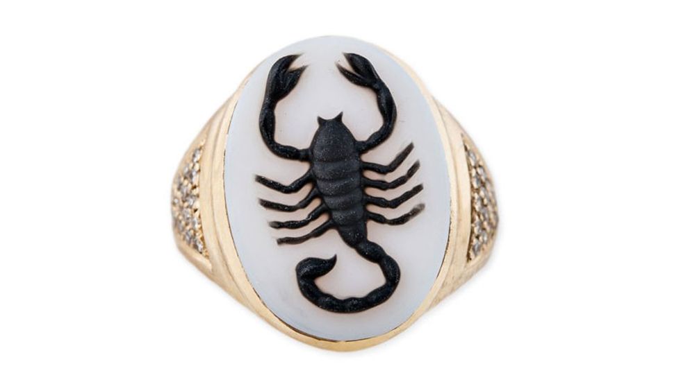 Scorpios are known to be *intense,* and really, what’s more intense than a black carved Scorpio on an oversized 14k gold ring?