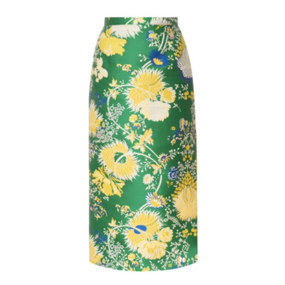 To me, there is only one skirt that matters this season, and this is it. Its bright colors can be dressed up with heels or paired down with a neutral flat. It also sits perfectly on the waist, so you can throw a cute crop top on or add some volume with a top like the white Rosie Assoulin one below.