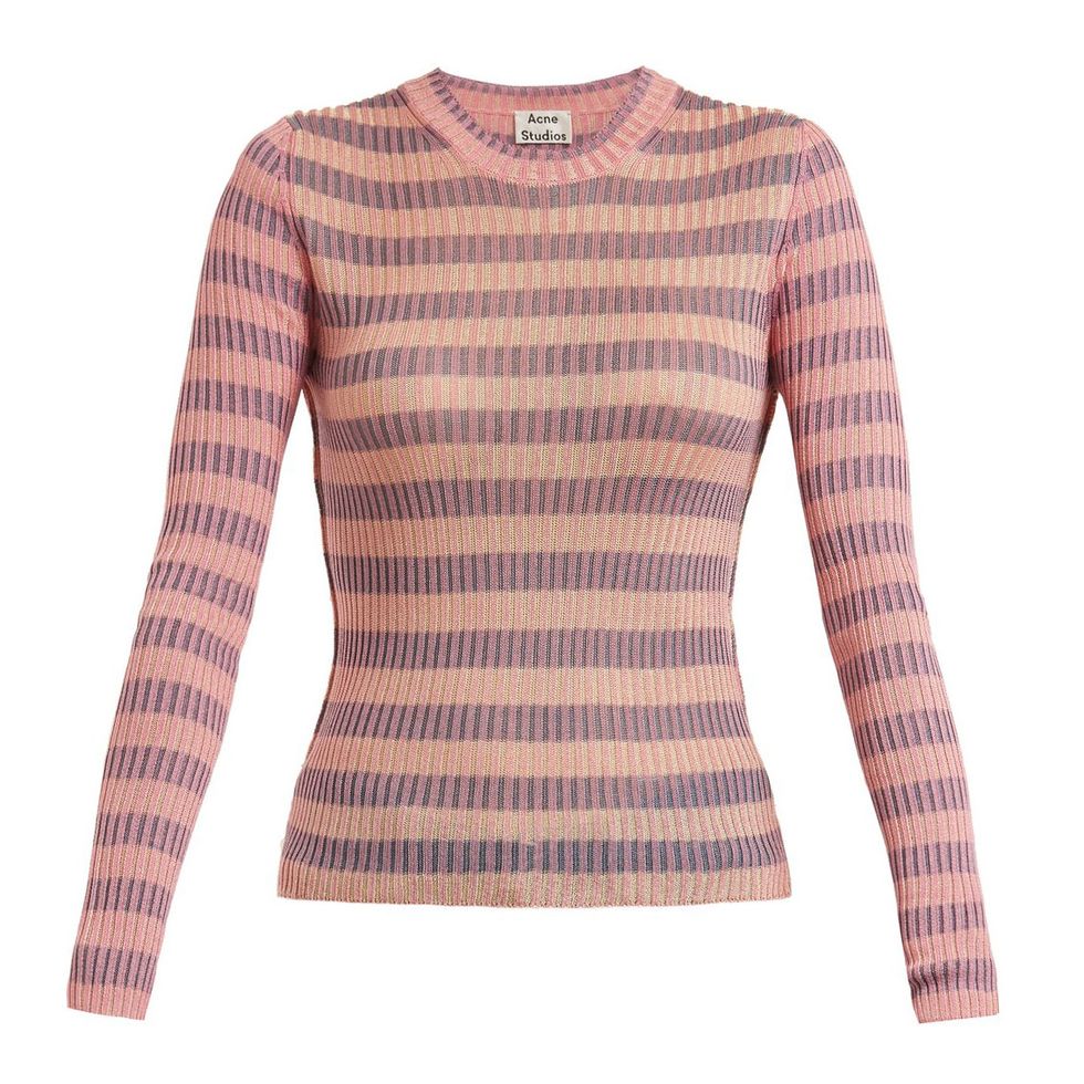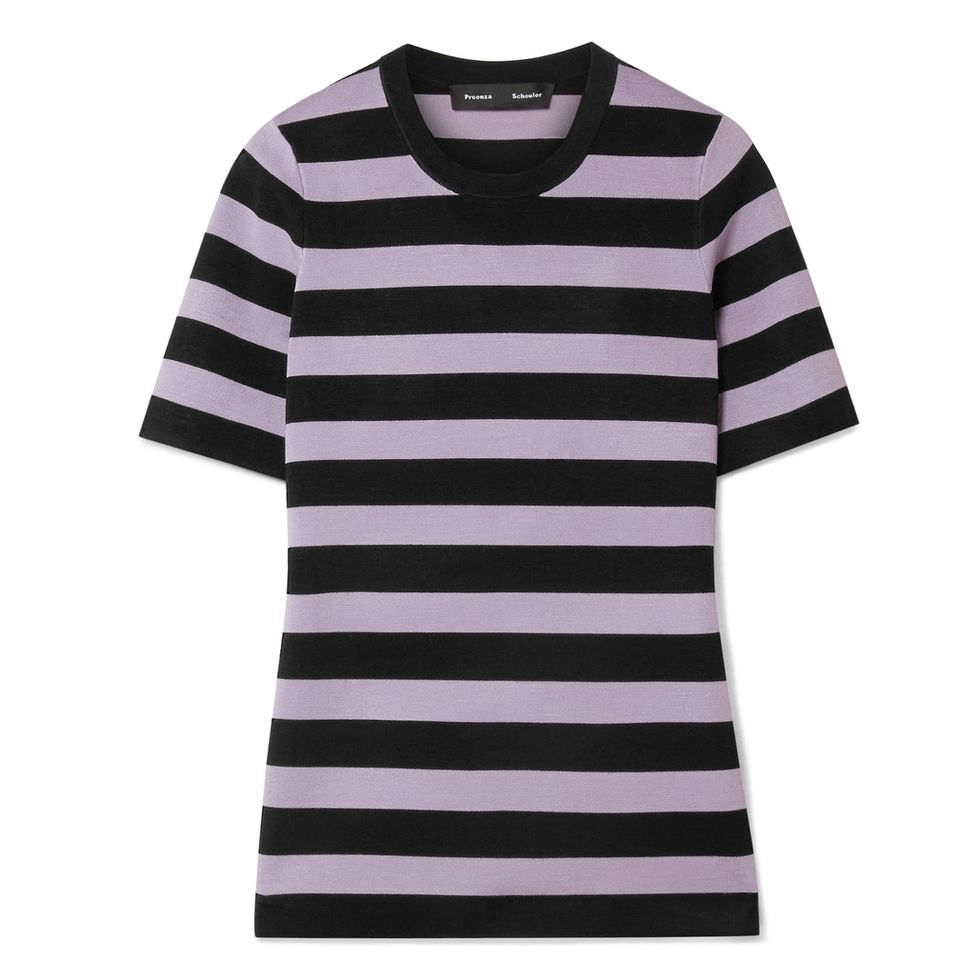 Despite what you hear, horizontal stripes should NOT be avoided. Sure, they have a bad rep for their supposed broad silhouettes, but paired with leather pants—as does MAG—they’re simply très chic.