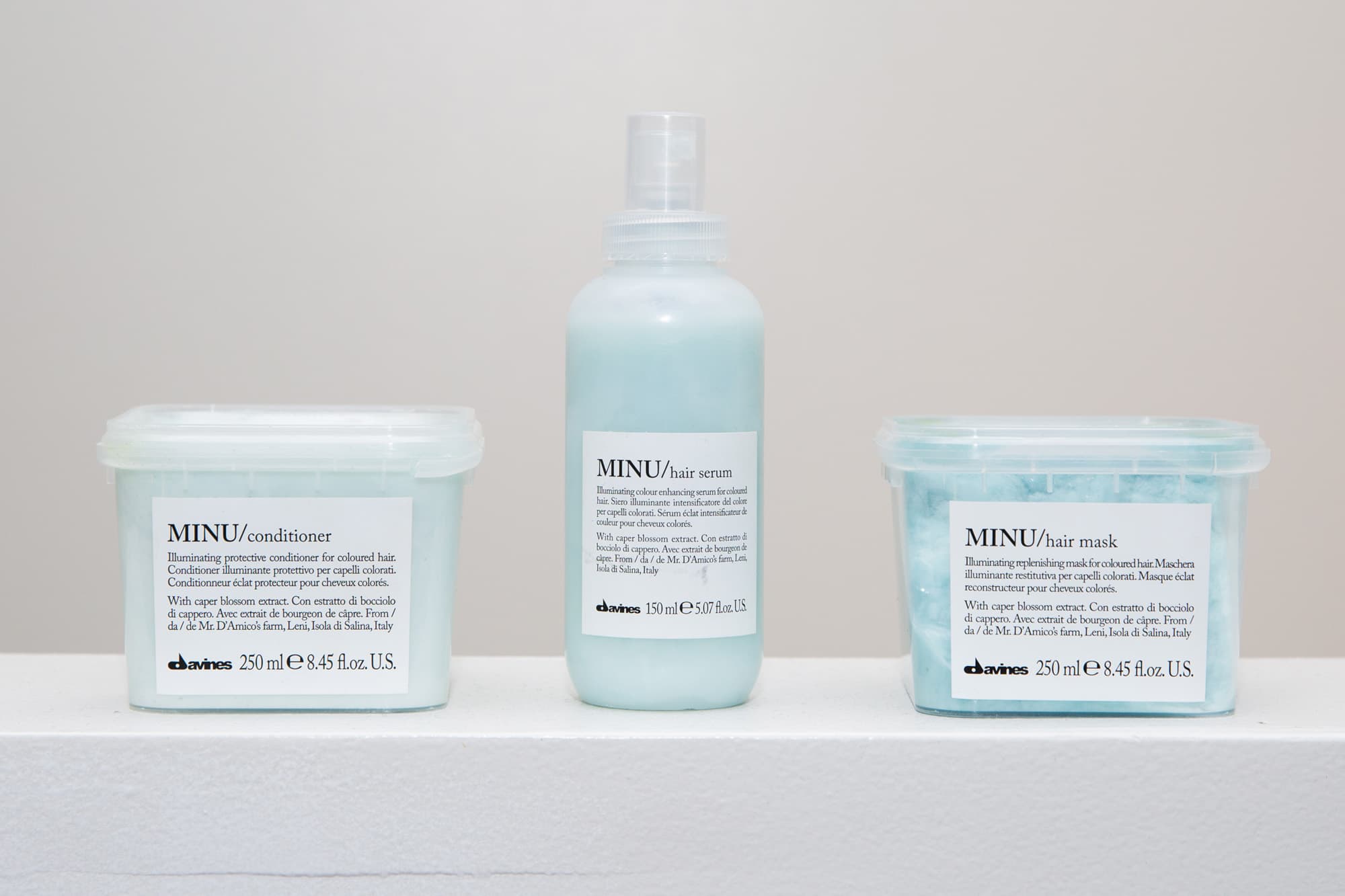 “I like Oribe—the purple shampoo and conditioner—and sometimes in a pinch, oVertone. I’ll mix it with conditioner. Olaplex will help strengthen the hair. Unwash is really good—it’s a mask. Nunzio’s Cream is really good, too—it’s a cream that helps add moisture into the hair and keeps the frizz away. Kérastase has great hair masks. Always go for moisturizing, because your hair looks better, shinier, less frizzy, when there’s moisture in it.”