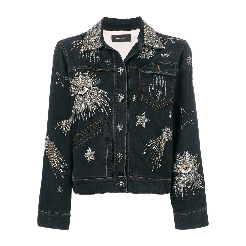 For Coutinho, denim jackets are “the most versatile items you can have in your wardrobe.” She has plenty to choose from, but Levi’s and Helmut Lang are among her favorites—making the foundation of a strong high-low statement.
