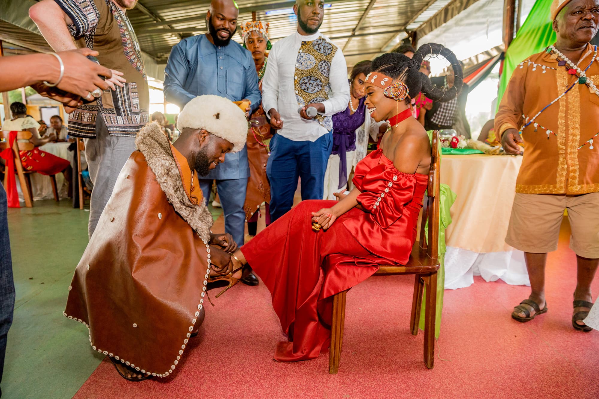 “After the two families have agreed on a dowry price, we’re officially allowed to be married. We combined a few of the ceremonies into one. My side has to bring out a few of my ninjas to see if my husband-to-be knows his wife. We wrapped my people in the traditional Kenyan cloth, Lesso, while James and his boys had to try to pick me out of the lineup.