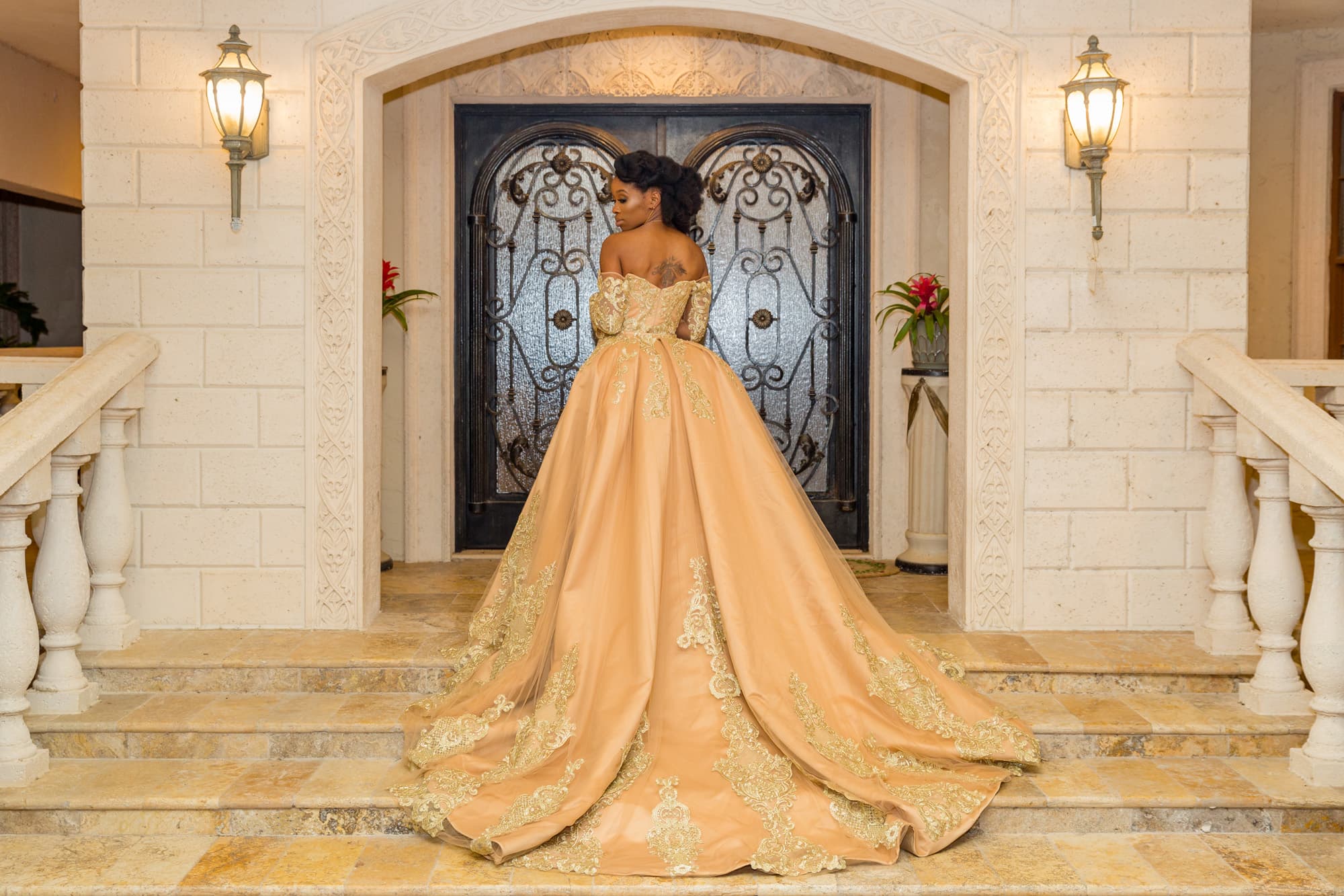 “A month later we were back in Miami for part two! The color palette was gold, black, and cream. I ended up designing and planning my own wedding with my cousins after firing my wedding planner. I had about three and a half weeks to pull this off. It wasn’t traditional at all.”
