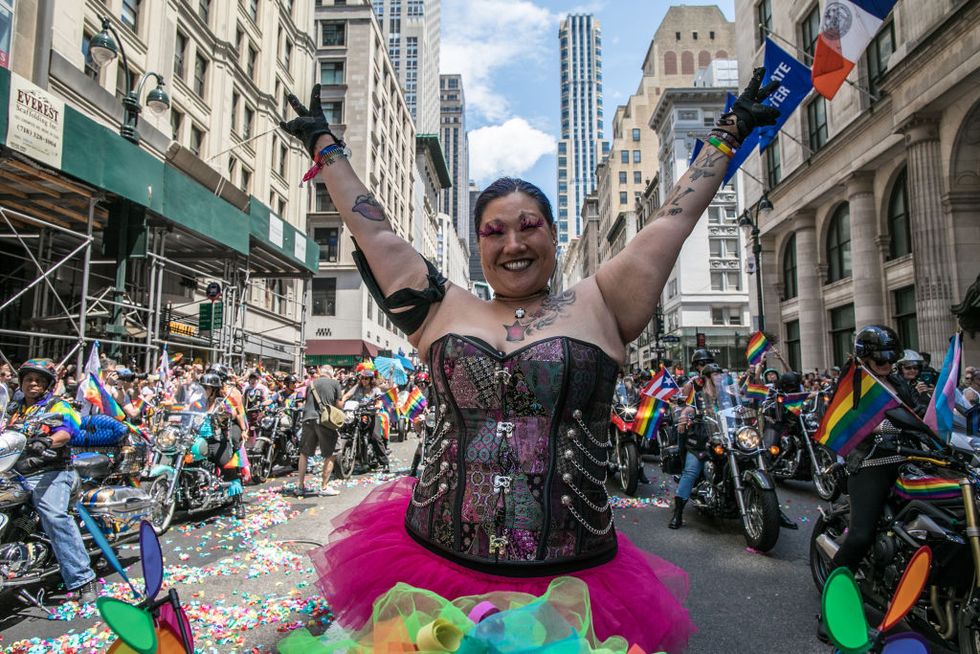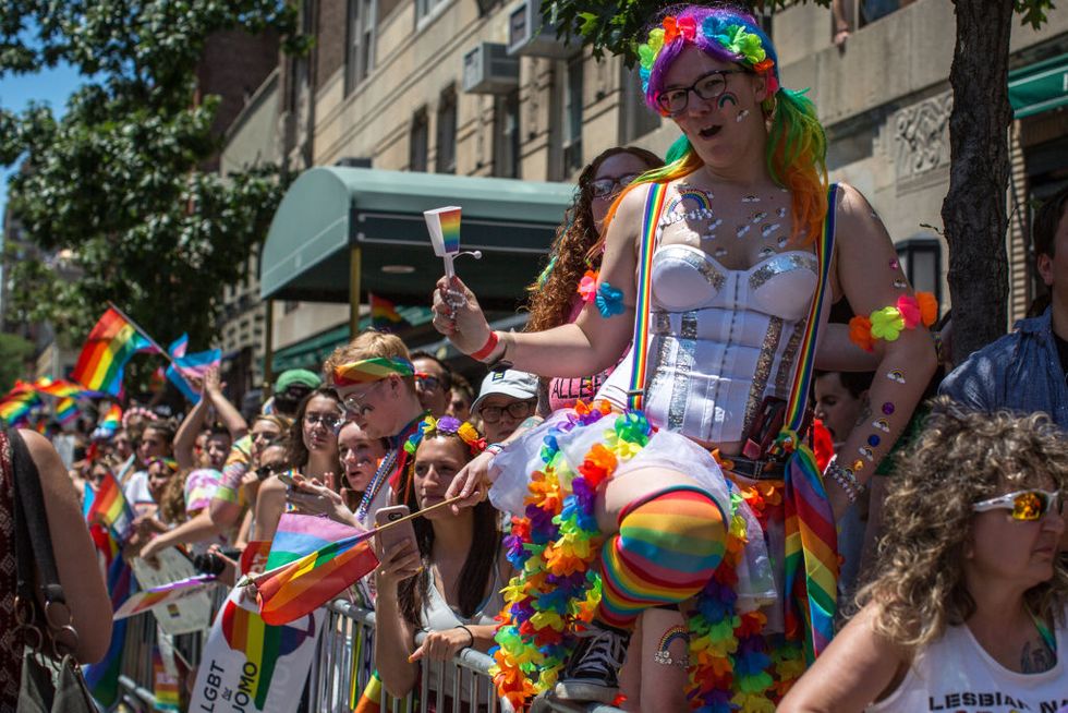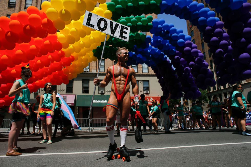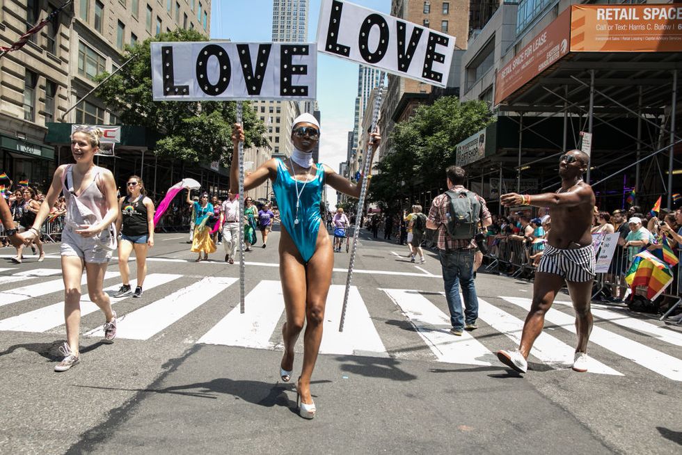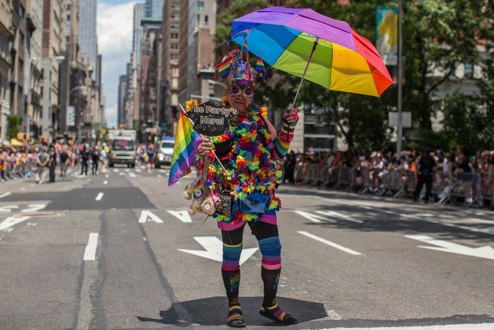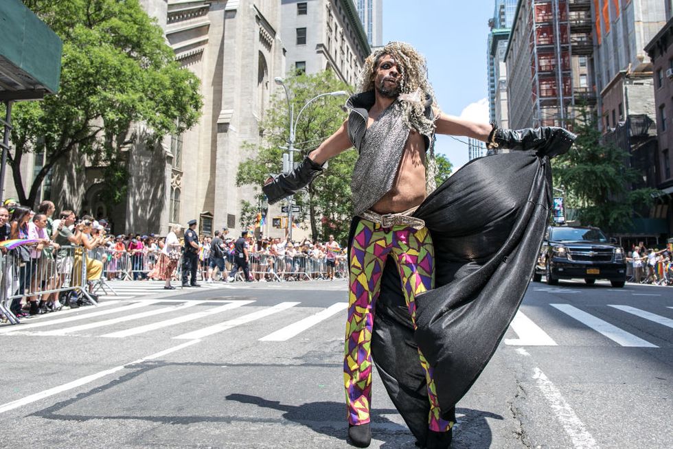 Today was the 49th annual New York Gay Pride Parade, the largest nationwide, and as always it was a fabulous celebration of love, acceptance, and equal rights. Thousands of people turned out to watch as the city’s most fashionable members and allies of the LGBTQ community marched through Greenwich Village and up 5th Avenue. Billie Jean King, one of this year’s grand marshals, walked alongside transgender advocate Tyler Ford in a sea of fairy wings, glitter, rainbows, G-strings, and body paint. The exuberant atmosphere stood in direct defiance of the president’s refusal to acknowledge June as pride month for the second year in a row, and many marchers carried signs deriding him for his stance—a tiny blip on an otherwise joyous occasion. Check out our favorite outfits and images from the afternoon below, and enjoy the rest of pride month!