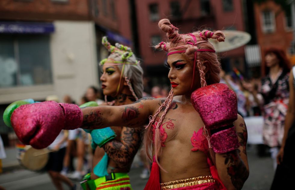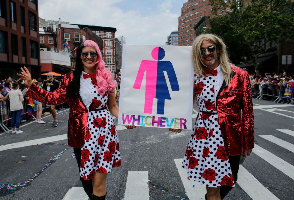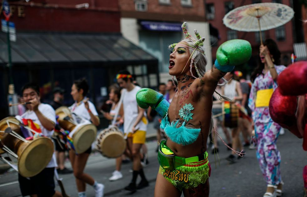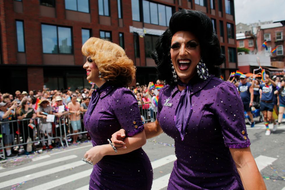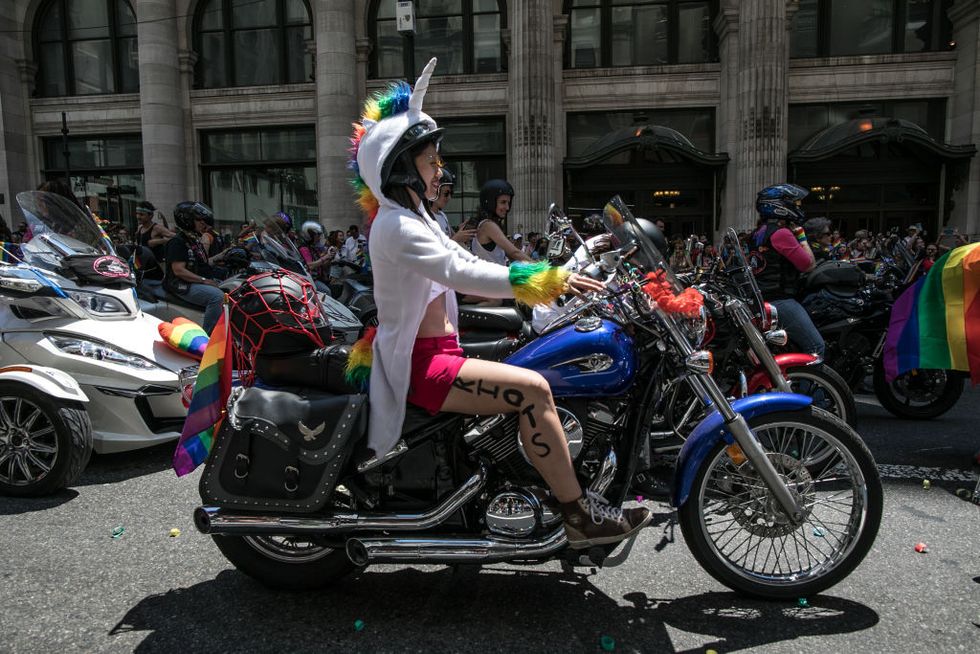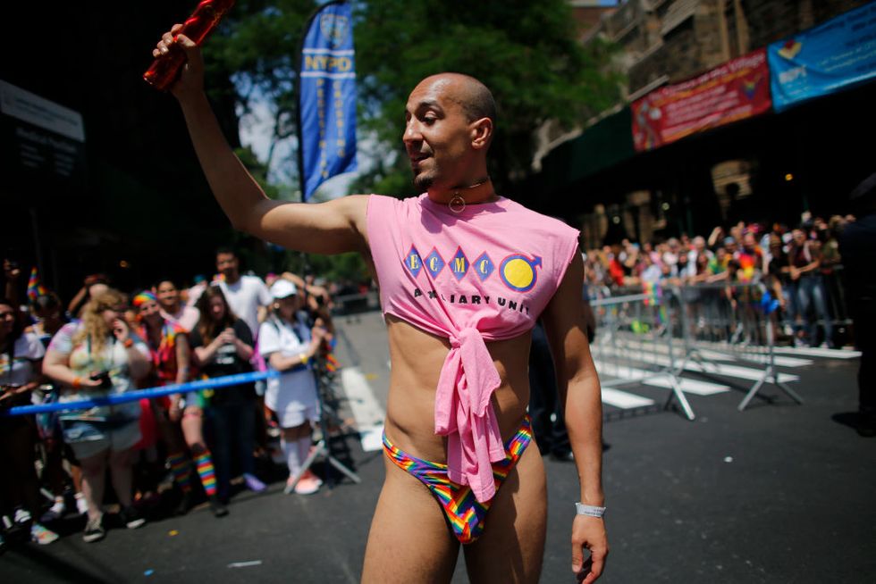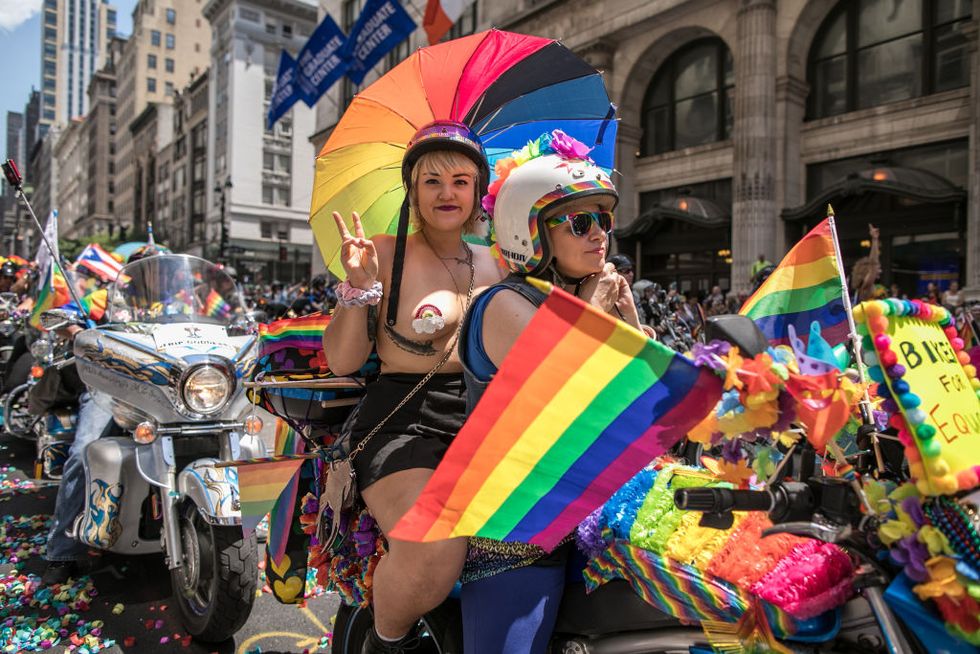 Today was the 49th annual New York Gay Pride Parade, the largest nationwide, and as always it was a fabulous celebration of love, acceptance, and equal rights. Thousands of people turned out to watch as the city’s most fashionable members and allies of the LGBTQ community marched through Greenwich Village and up 5th Avenue. Billie Jean King, one of this year’s grand marshals, walked alongside transgender advocate Tyler Ford in a sea of fairy wings, glitter, rainbows, G-strings, and body paint. The exuberant atmosphere stood in direct defiance of the president’s refusal to acknowledge June as pride month for the second year in a row, and many marchers carried signs deriding him for his stance—a tiny blip on an otherwise joyous occasion. Check out our favorite outfits and images from the afternoon below, and enjoy the rest of pride month!