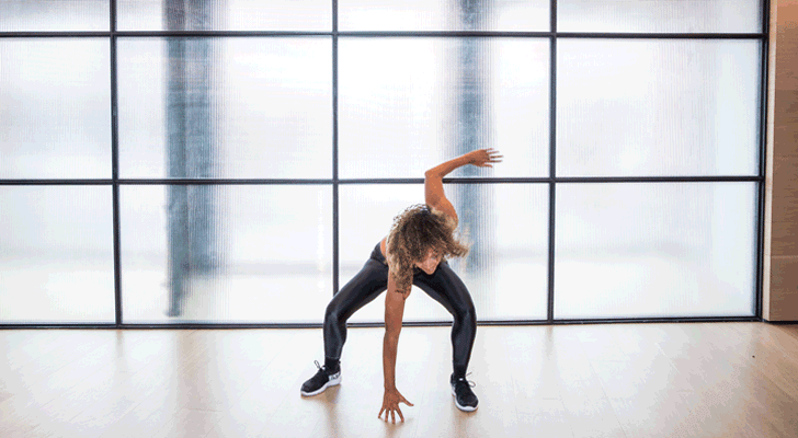 “Every move in this workout was inspired by choreography I use in my classes. It’s a total-body workout that emphasizes the lower body and core strength. What I love about dancing is that you forget it’s a workout. I want it to be fun. And of course it’s a workout for your brain, which helps you ultimately understand movement patterns,” Copeland says. Here are six moves she swears will give you the best toning session without feeling like it.