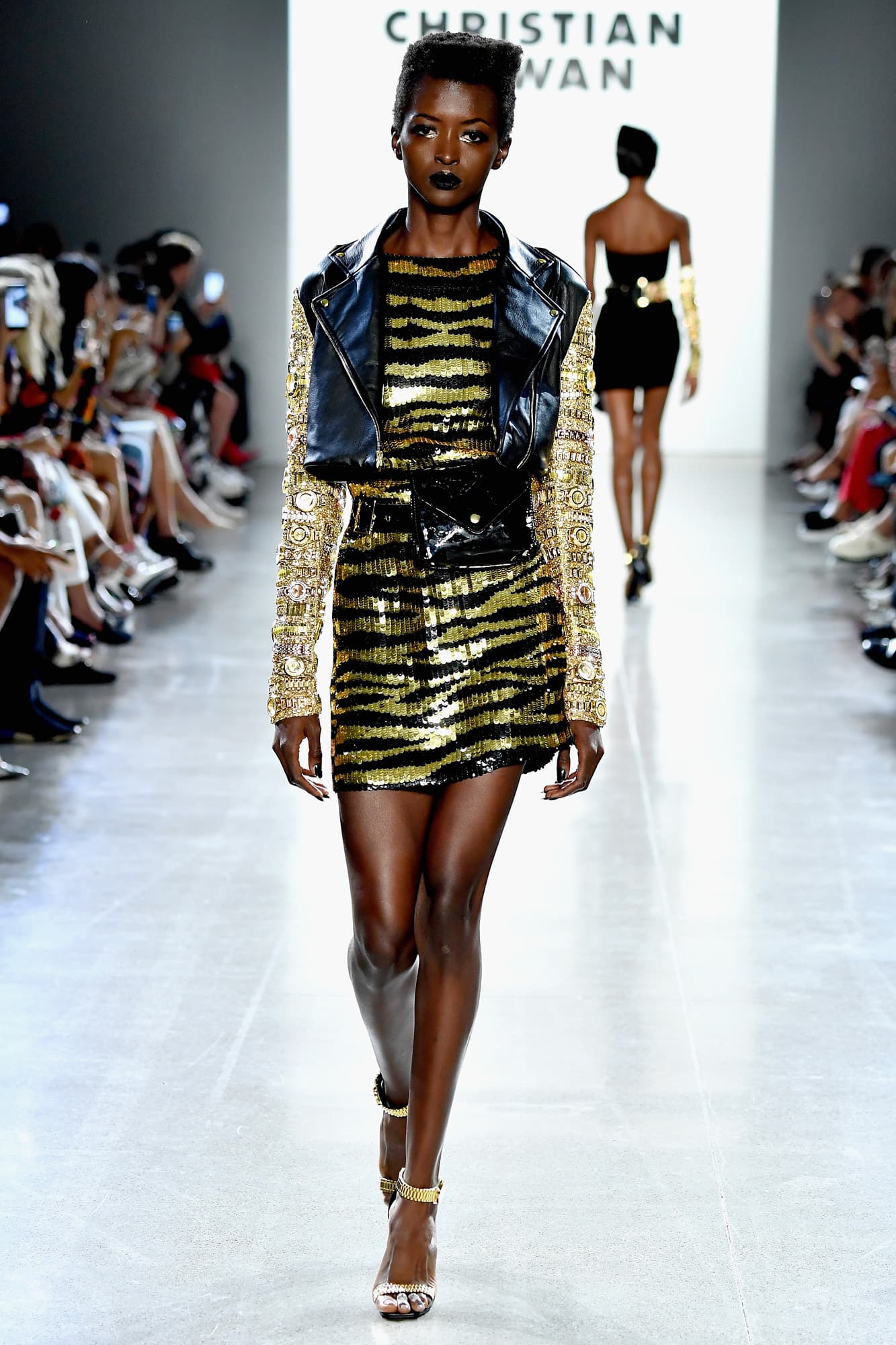 “It’s the dream,” says Cowan. “When I was 12, I decided I would be a fashion designer and live in New York City, and to be part of such an amazing week, it’s a dream.” This season, Cowan showed a collection full of exaggerated, structured tulle dresses and reworked suiting done up all in black along with animal-print jumpsuits and dresses, and pastel-hued dresses embellished with massive feathers—all the kind of thing you’ll probably see on the next star-studded stage. “My future goals are to create a modern fashion house that is based on inclusion and excitement,” he says. “I want to enrich American fashion and create opportunities for more like-minded individuals.”