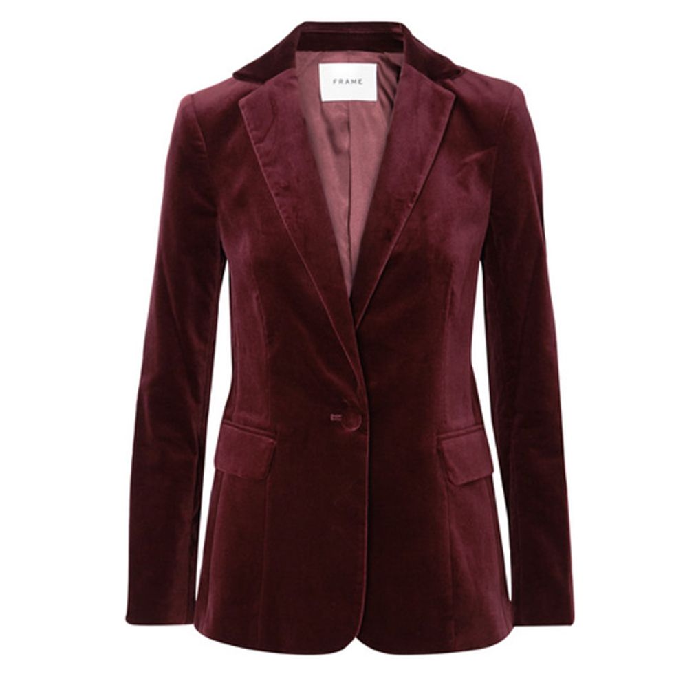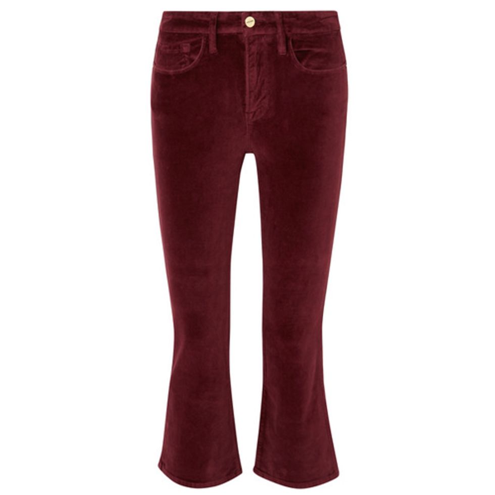 There’s something about maroon velvet that makes you look like you’ve got seven digits on your paycheck. I can’t get over this luscious cropped version from Frame—perfect for showing off those new boots you just bought.