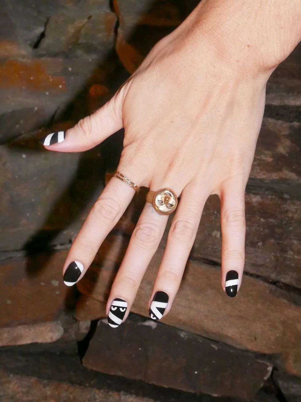 When we’re in need of new nail ideas—whether it’s a nail art tutorial that perfectly matches our outfit, or a new shade of red—we hit up Madeline Poole for DIY tips and inspiration. So with Halloween coming up, we knew we had to ask for her take on spooky nails (i.e., more than just a couple coats of dark purple polish). Per usual, the manicurist did us one better and dreamt up a mummified nail look that’s perfect for both kinds of people—those who tend to keep Halloween more low-key (as in, your nails are the costume), and those who go all out every year. Read on for the mummy manicure step-by-step, and then prepare yourself for an onslaught of compliments.