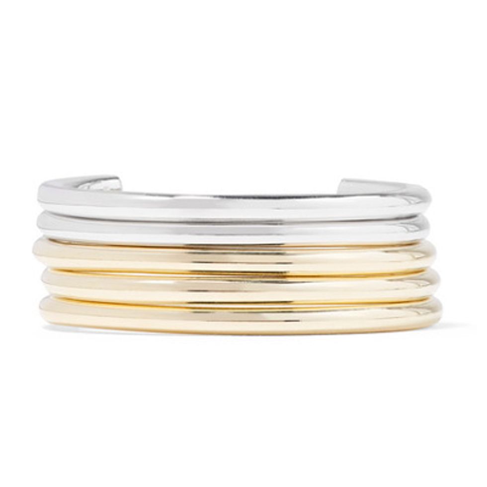 Think Mom’s and Grandma’s hand-me-downs, but even better. Richards collection has the perfect balance of feminine and edgy, so vary your gems by stockpiling dainty and feminine pieces—thin gold bands for layering and chains with modest pendants—and mix them with oversized gem-encrusted pieces. Go outside the box and get creative with big round statement rings, thick gold links, and one-of-a-kind brooches.