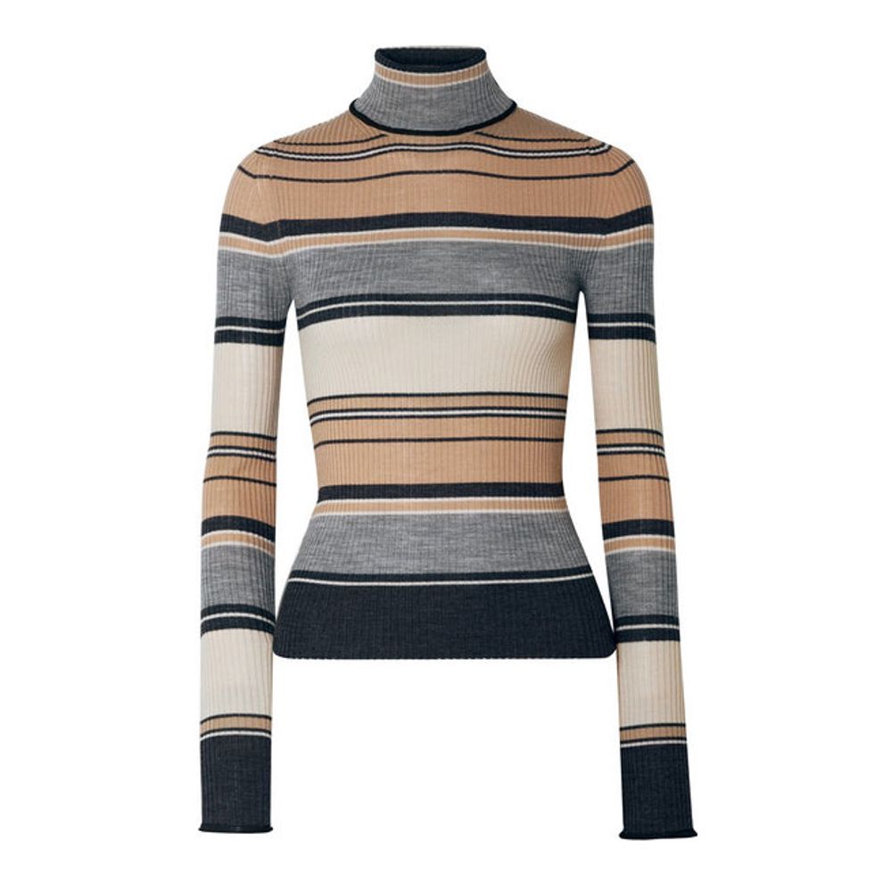 1. Acne Studios Ribbed Striped Merino Wool Turtleneck Sweater: As much as I *love* an oversized slouchy sweater, it’s not the most conducive to layering. But a body-conscious turtleneck in soft merino wool steals my heart every time. I love the muted stripes on this Acne style—it will go with pretty much everything I own, making it well worth the investment.