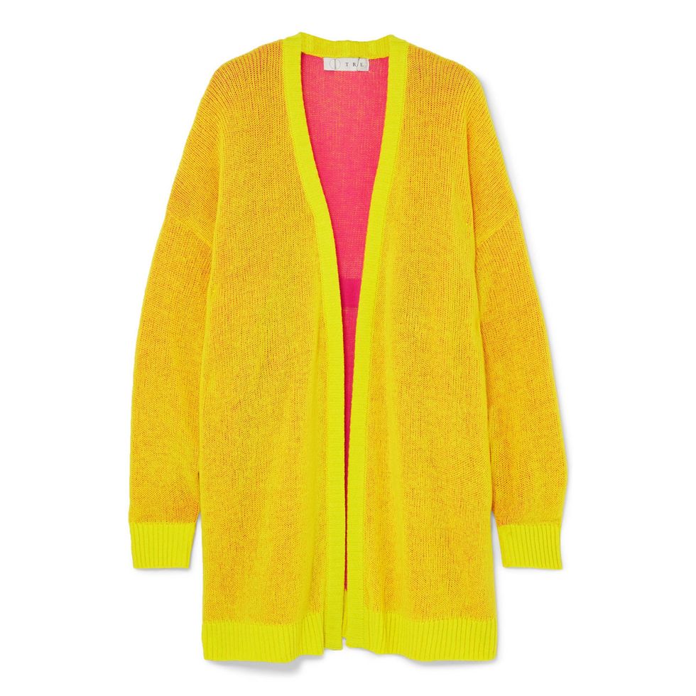 2. Tre Miki Oversized Cashmere Cardigan: If I have to endure dropping temps, I might as well do it in a massive yellow-and-hot-pink cardigan, right?