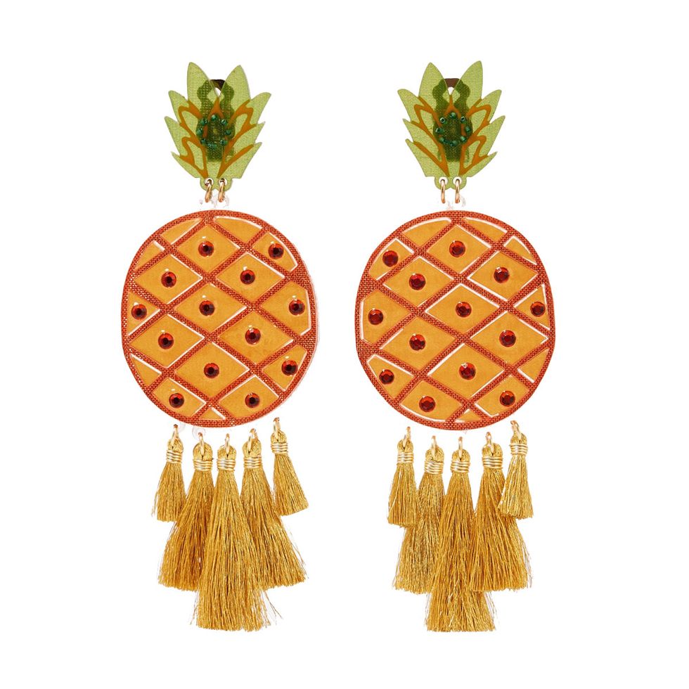 Like the icing on a cake, vibrant, extra-large earrings can be the sweet finish your outfit needs. Kitschy pieces, such as bejeweled rainbow drop earrings or a dangling pineapple design, will make your earlobes the life of the party.