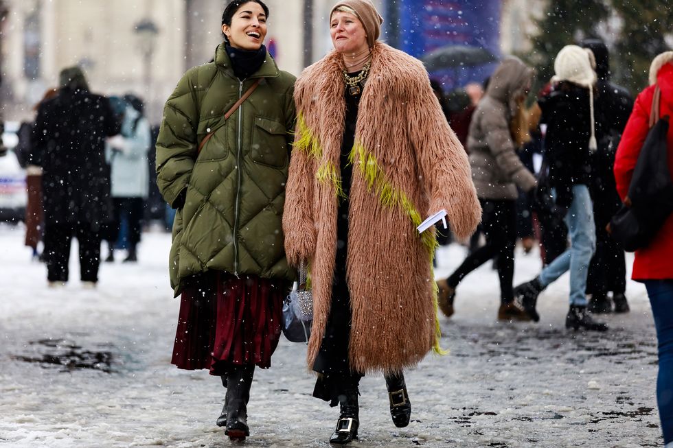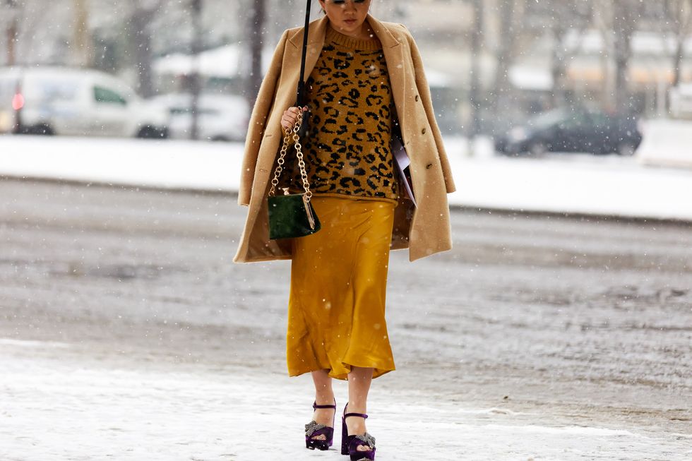 As snow falls in Paris, sartorially blessed front-rowers ascend on the French fashion capital for the grand prix of fashion month: Haute Couture Fashion Week. The less than tepid temperature meant that outerwear had its shining moment. Oversized neon shearling coats were enough visual candy to stand on their own. We saw layers of varying proportions and length (crop tops are still having a moment, according to this crowd), and weāre pretty sure camo is here to stay. Structured bags and sleek blazers paired with a muted color palette of turtlenecksāthink olive green and terracottaāprove that Mother Nature is no match for these showgoers. Luckily, we still have a few more days of Couture ahead, so keep coming back for more of our favorite street style looks below.