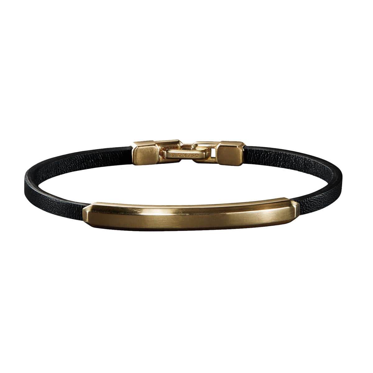 Streamline Leather Bar ID Bracelet with 18K Gold