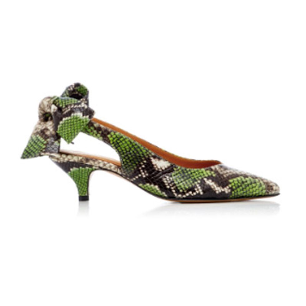 3. Ganni Sabine Printed Snakeskin Pumps: Statement shoes are the perfect solution to the days when all your brain can muster up for an outfit is jeans and a t-shirt. This snakeskin pair of pumps doesn’t have too high of a heel and is at a very reasonable price point.