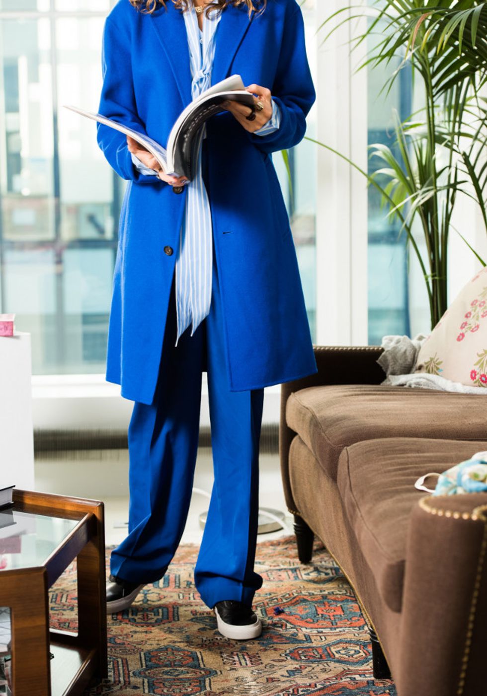 “I keep it all as one. What you see is what you get. If I had it my way I would forever be living in a silk slip, or high-waisted Mom jeans. Working with more corporate clients with the legal side of the business, you do have to dress it up with a blazer or a suit pant.”