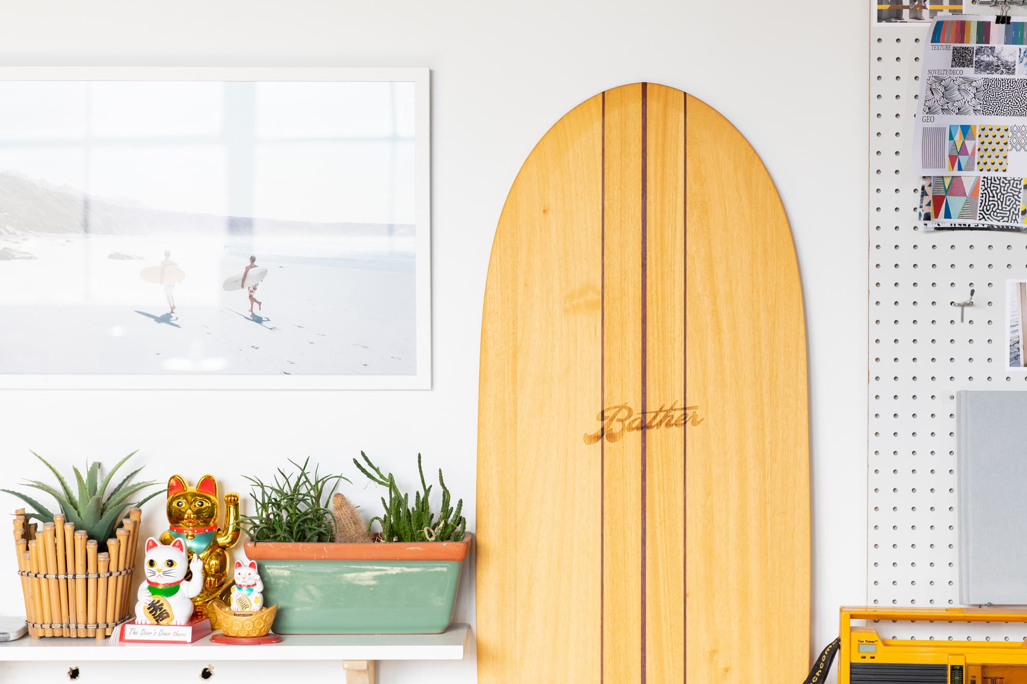 “The patterns [are] something that is a selling point for Bather [because] we design the patterns ourselves. A lot of swimwear brands are buying the fabrics off the rack, which is why you see a lot of pineapples, a lot of flamingos. We have purposefully never put a flamingo or a pineapple on a bathing suit for that purpose, so you don’t ever question if we’re buying the fabric off the rack. No beef with flamingos, but just to separate ourselves. My brother, Evan, who’s a graphic designer, does a lot of the design work for the company. A little bit of forecasting, but a lot of the time we don’t give a fuck, we’re just doing whatever we want. Nowadays, if you have a good eye then people will acknowledge that.”
