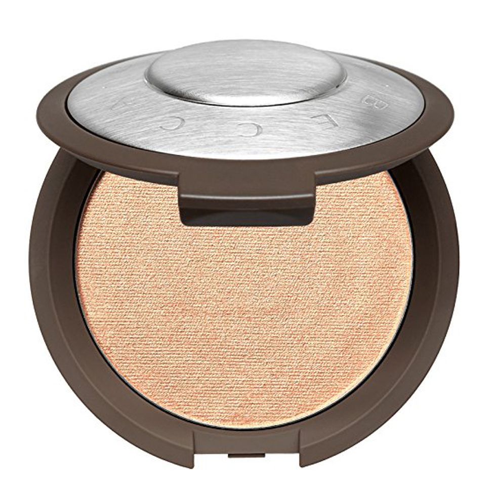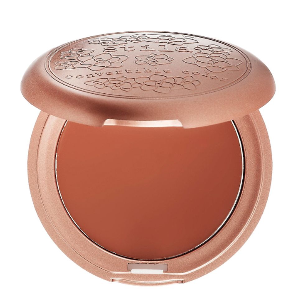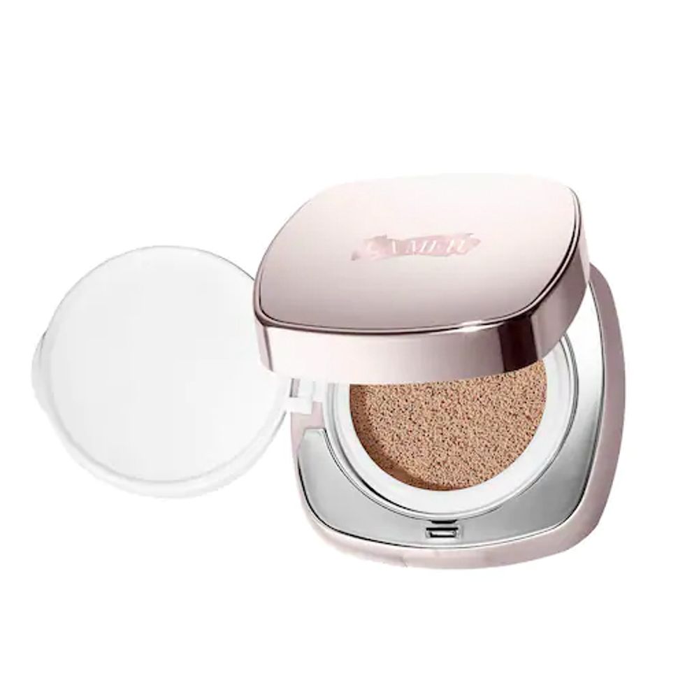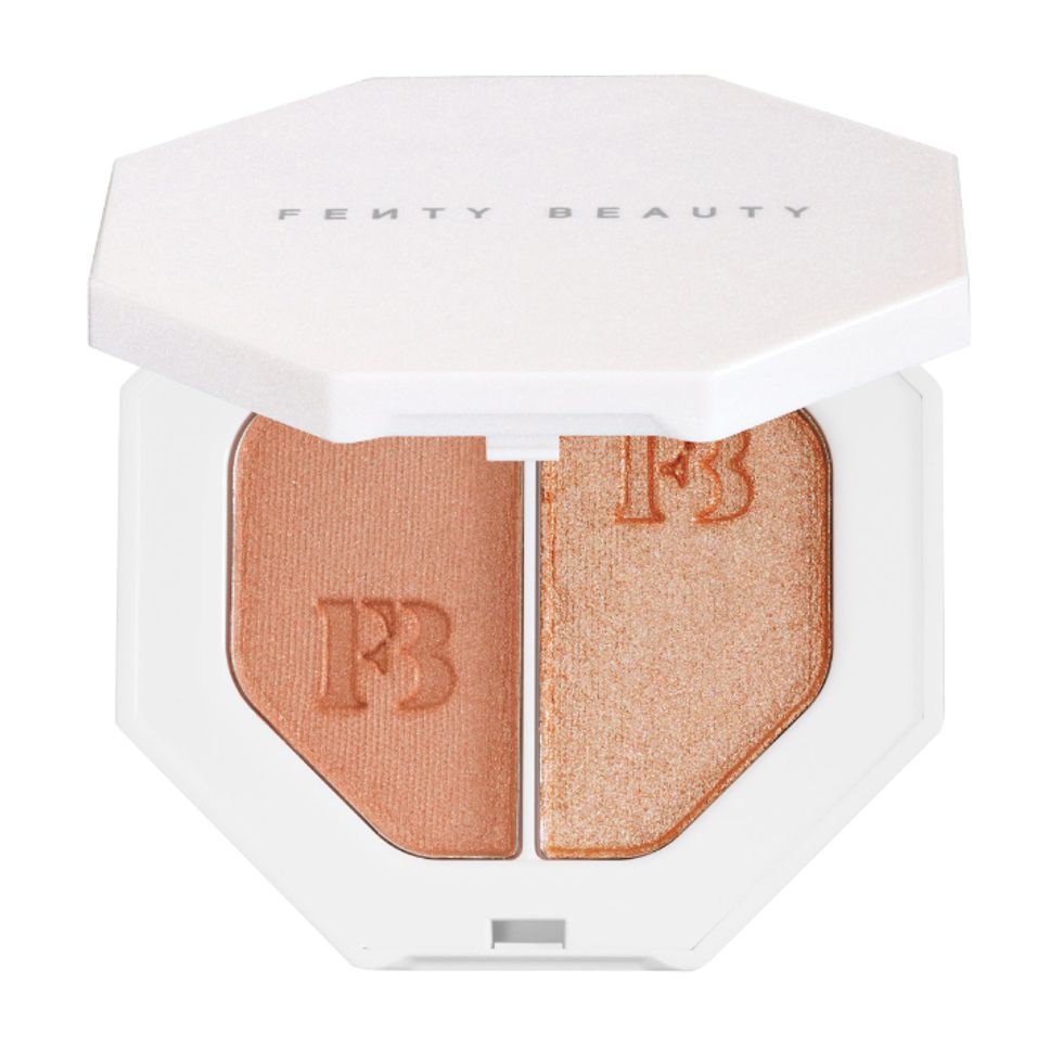 “If you’re like me and you don’t care about coverage, I might just put on a glowy lotion and then spot-treat with concealer. Then I might use a cream blush, like the Stila Convertible Color. I love a cushion compact, like the new La Mer—it’s so wet and dewy. If you love highlighter, I do a cream highlighter and set it with a powder. You could do the wet-look highlighter or a shimmer look with the Becca Champagne Pop. If you want to go over-the-top, you [use] Fenty.”