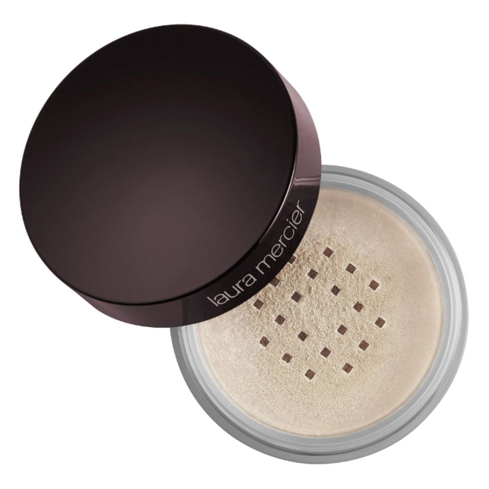 “I love a setting powder, like the Laura Mercier Translucent Setting Powder. I actually prefer loose powder, but I know it’s hard to carry. When you’re sweaty and you add more powder, you have to blot. I think another mistake people make is powdering the whole face. I like certain points of the forehead to be shiny. I like positioned powder, where it needs to go, [and for] the high points to be dewy. I don’t want you to look like a pancake.”